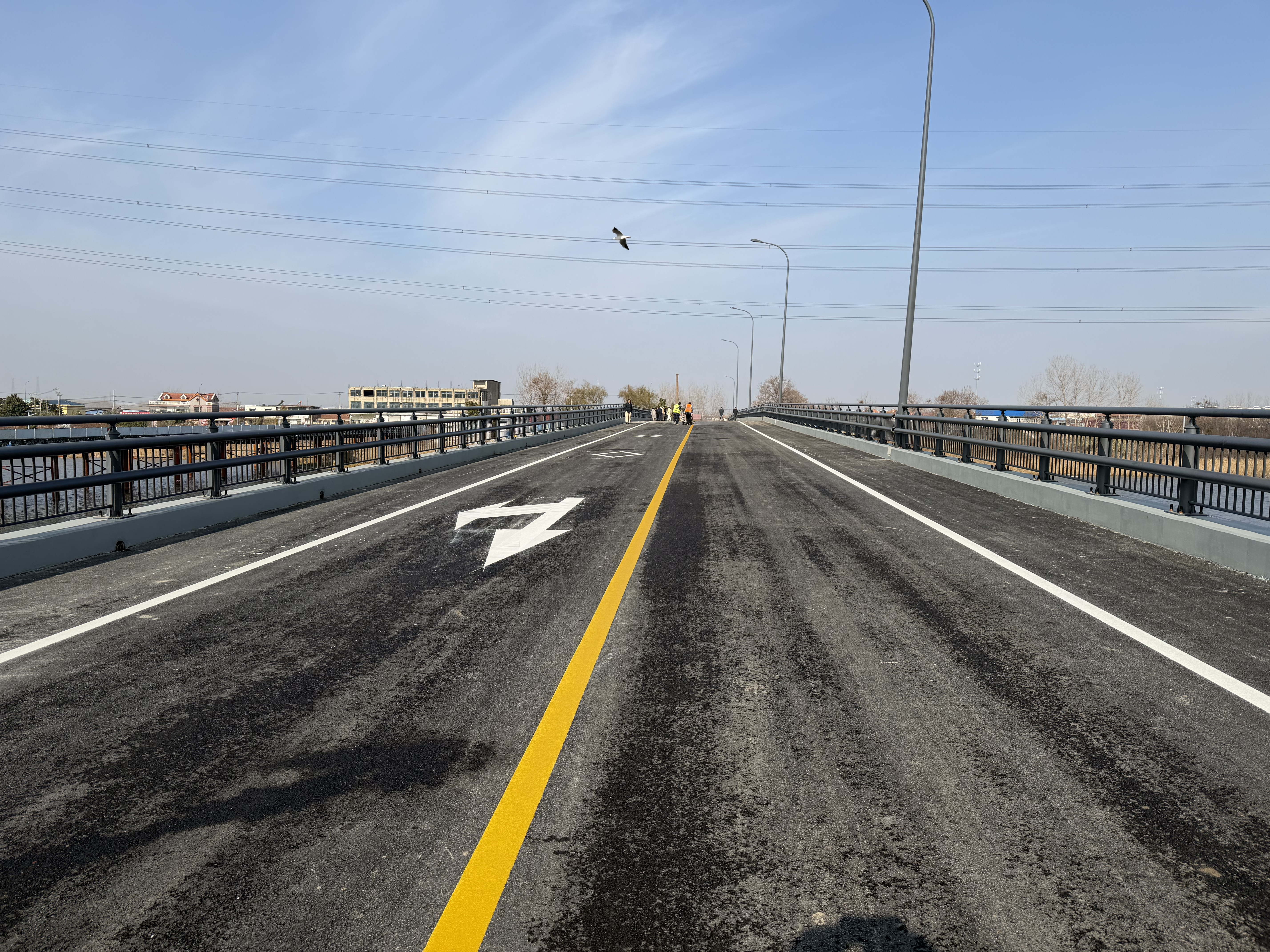 新建橋梁嚴(yán)格遵循城市支路標(biāo)準(zhǔn),上跨薔薇河,橋梁總寬12米,長216.4米,實施雙向兩車道通行模式,設(shè)計時速40公里/小時,橋面平整寬闊,配套設(shè)施一應(yīng)俱全。相較于老舊橋梁,新建橋梁不僅徹底解決舊橋老化帶來的通行隱患,更實現(xiàn)通行效率的大幅提升,曾經(jīng)的“通行堵點”正式變身“暢通節(jié)點”。