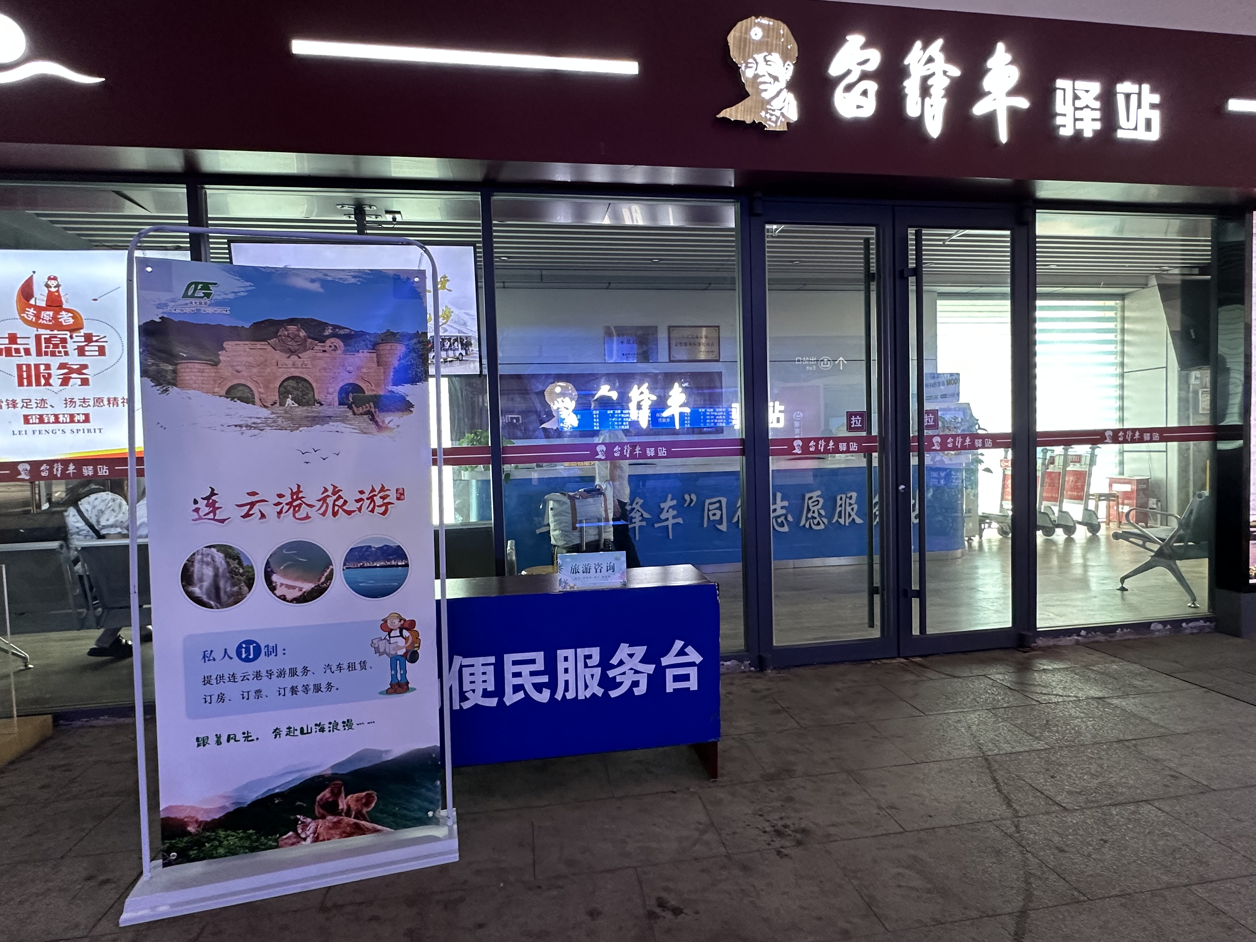 風光國際旅行社在“雷鋒車”驛站設立旅游咨詢服務臺,擺放連云港各個景區(qū)資料,并在高鐵站出站口醒目位置樹立連云港旅游宣傳海報。工作人員身穿紅色志愿者馬甲迎接來自全國各地的出站旅客,熱情的為他們指路、介紹連云港的旅游攻略,并根據(jù)旅客的具體需求,個性化安排連云港旅游服務,包括訂票、訂房、訂餐、導游服務及汽車租賃等,并且在每個環(huán)節(jié)都賦予外地游客專屬的體驗。