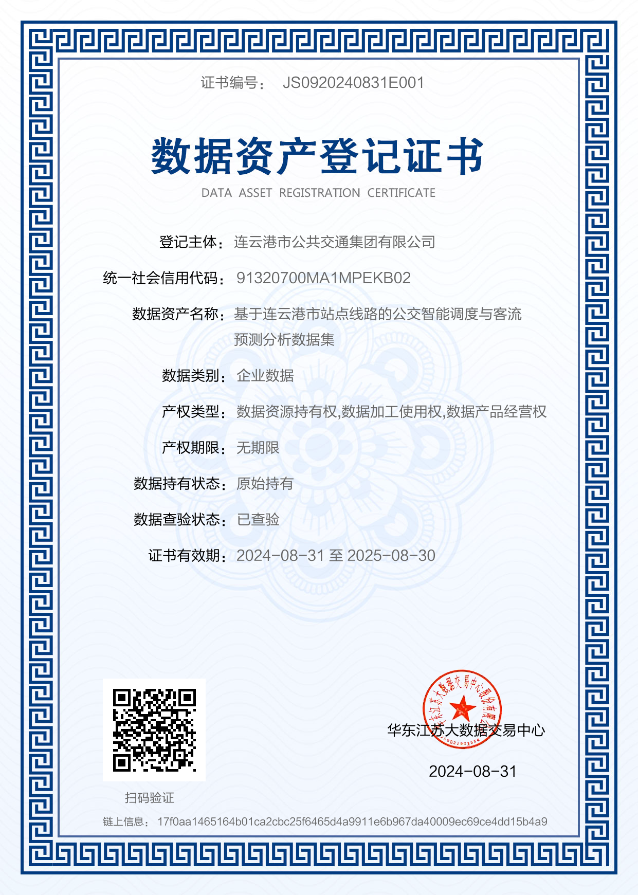 隨著數(shù)據(jù)資產(chǎn)確認(rèn)政策的正式落地,在連云港市國資委、市交通控股集團(tuán)有限公司的共同指導(dǎo)下,連云港市公共交通集團(tuán)有限公司先行先試、勇于探索,成功實(shí)現(xiàn)了連云港市首個(gè)數(shù)據(jù)資產(chǎn)價(jià)值化全流程項(xiàng)目的落地,這標(biāo)志著連云港市公交集團(tuán)在數(shù)據(jù)資產(chǎn)化領(lǐng)域的先行一步,更為全市國有企業(yè)在數(shù)字資產(chǎn)化以及數(shù)字化轉(zhuǎn)型的道路上樹立了新的標(biāo)桿。