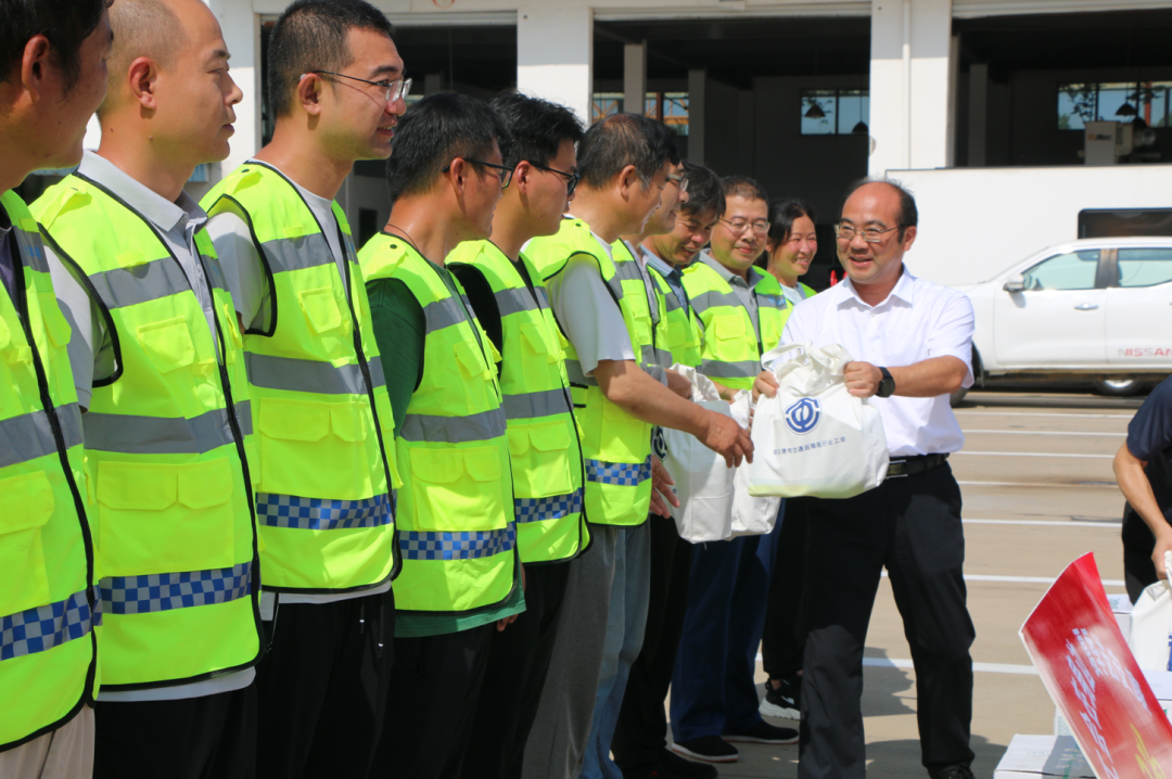 8月3日,市交通運輸局黨委書記、局長毛善通一行赴集團豐達公司公路工程養(yǎng)護應(yīng)急處置中心開展“夏季送安康”活動,為一線工作人員送來了防暑降溫用品,讓他們在炎炎夏日里感受到了一片清涼。交通控股集團黨委書記、董事長仲偉濤,黨委副書記、工會主席陳金師陪同慰問。