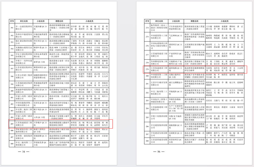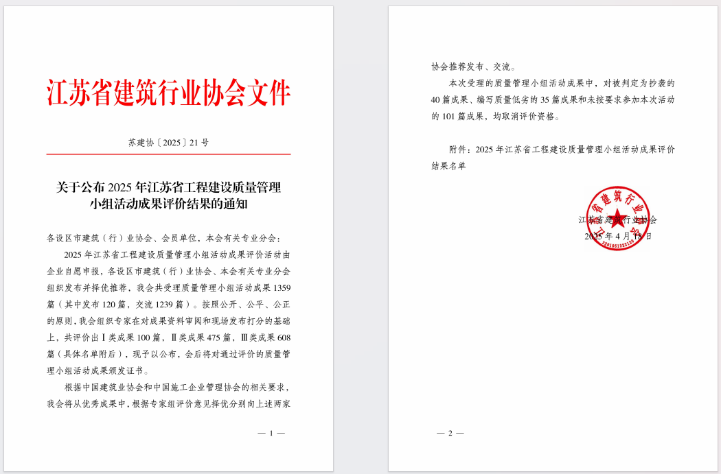 近日,江蘇省建筑行業(yè)協(xié)會公布2025年江蘇省工程建設質量管理小組活動成果評價結果,海建公司“只爭朝夕”QC小組、“瀛洲南路”QC小組憑借成果《提高鋼筋混凝土路面平整度驗收合格率》及《提高橋梁花瓶墩鋼筋保護層合格率》,在眾多參賽小組中脫穎而出,分別榮獲二類、三類成果獎。