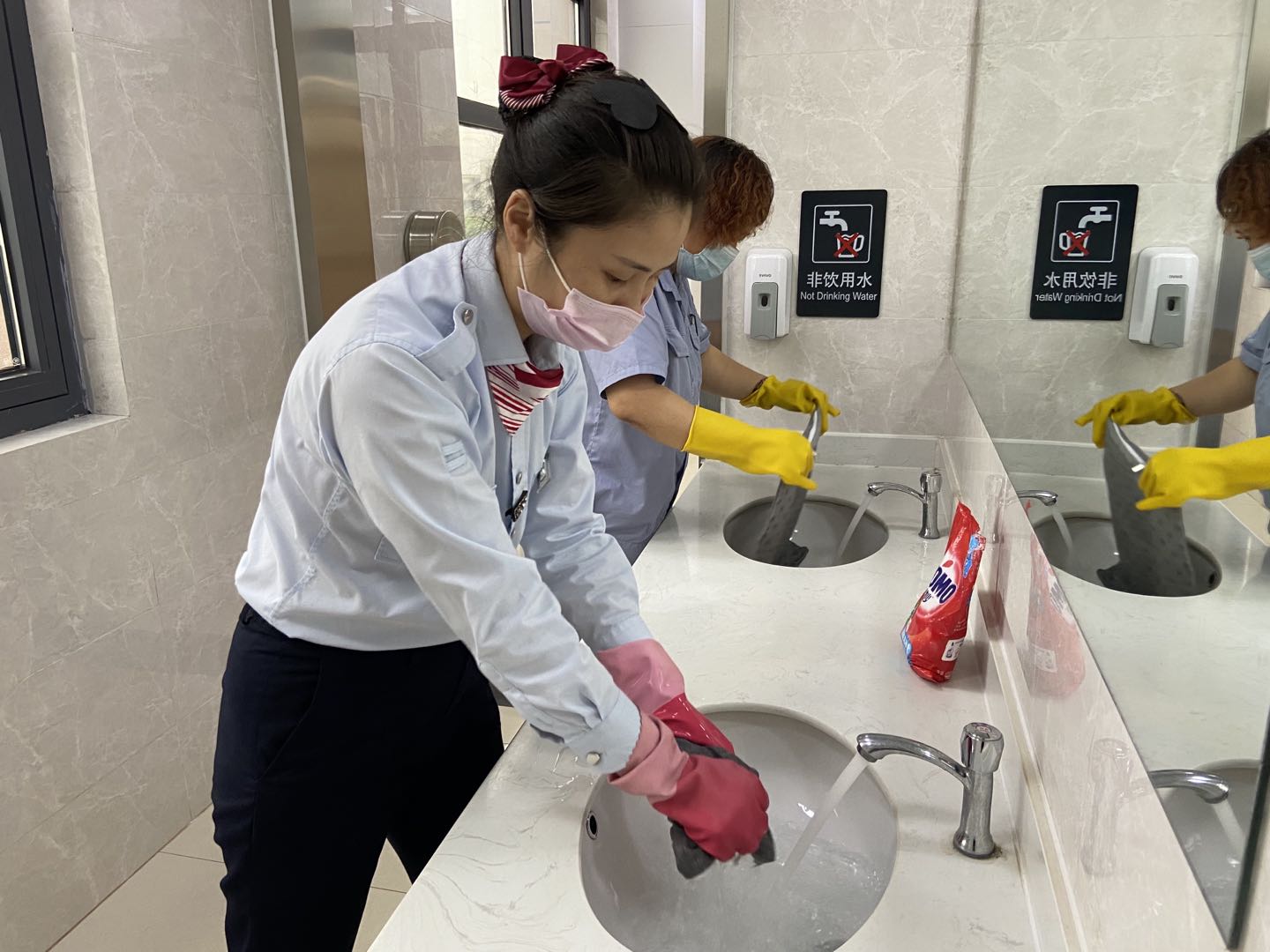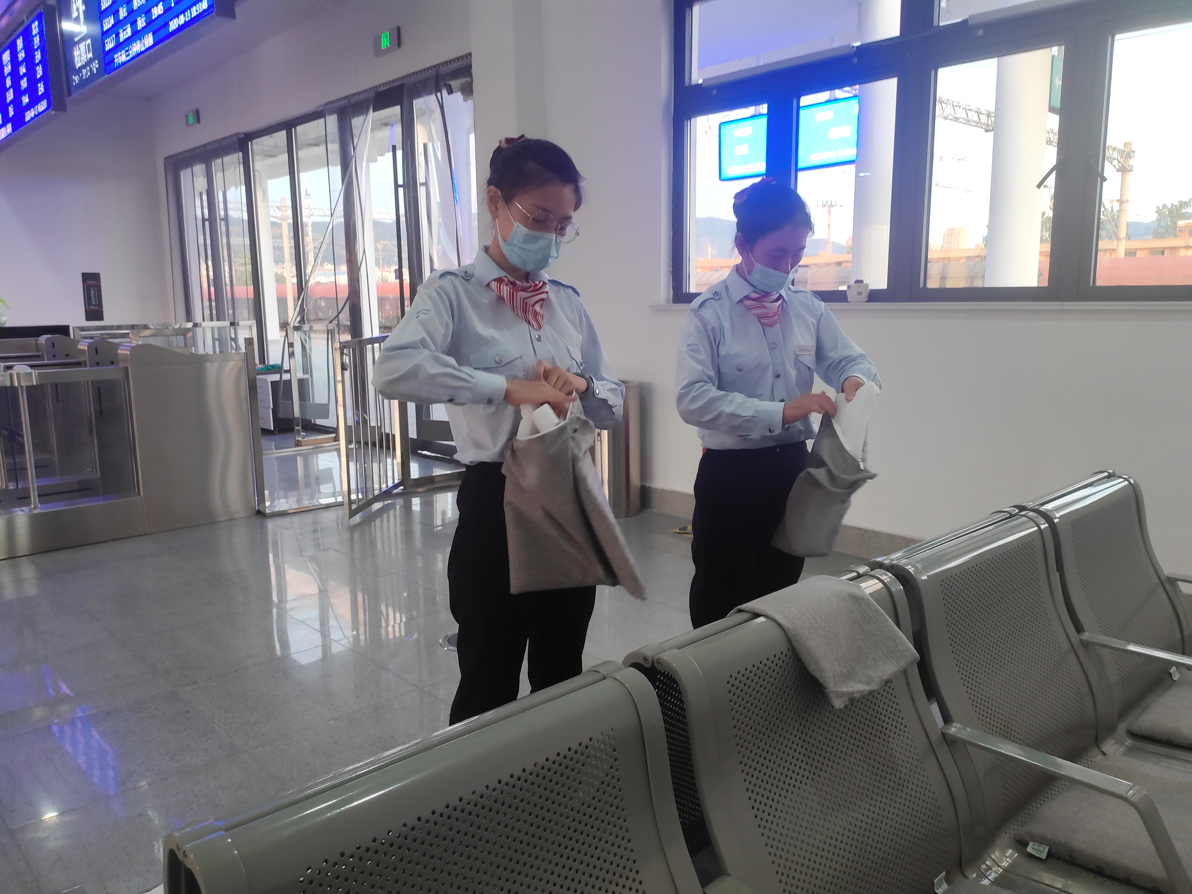 疫情當(dāng)前,城市動車站作為人口流動和聚集較多的地點對疫情防控更是一刻不敢松懈。為每一位乘客做測溫登記,檢查健康碼,定時對候車廳打掃消毒,城市動車組把疫情防控落到實處。為了乘客多一分安心與踏實,城市動車的保潔和站務(wù)員們配合一起對候車廳座椅上座墊進(jìn)行了清洗,站務(wù)組的姑娘們帶好手套,對每一個座墊仔細(xì)清洗消毒。連云站站長孫曉婷在面對乘客問詢時,她說:“候車廳的座椅是乘客進(jìn)站后的第一歇腳處,座椅我們每天早晚都消毒一次,而坐墊與乘客直接接觸,我們更應(yīng)該要定期清洗,既讓乘客感到潔凈舒適,也是我們對疫情防控貢獻(xiàn)自己的一份力量。”