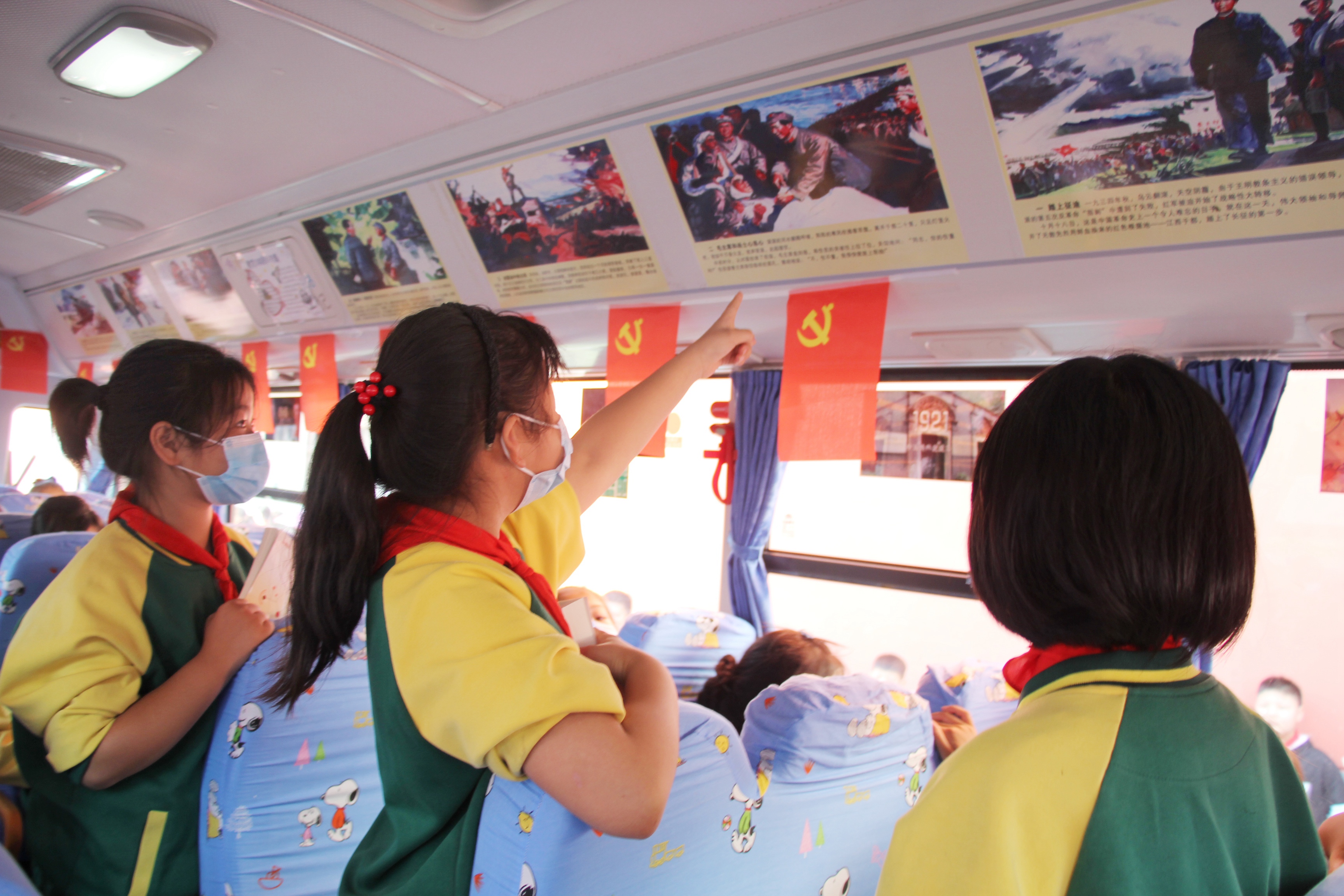 在黨史教育示范車廂內,一幅幅主題鮮明、引人入勝的宣傳展板呈現(xiàn)在孩子們面前,內容從中國共產黨誕生到新中國成立重大活動、重大戰(zhàn)役,黨的一大到十九大的光輝歷程,從紅船精神、井岡山精神到延安精神,圖文并茂地展示了中國共產黨的百年革命歷史,孩子們在乘車途中便可耳濡目染中國共產黨黨史。