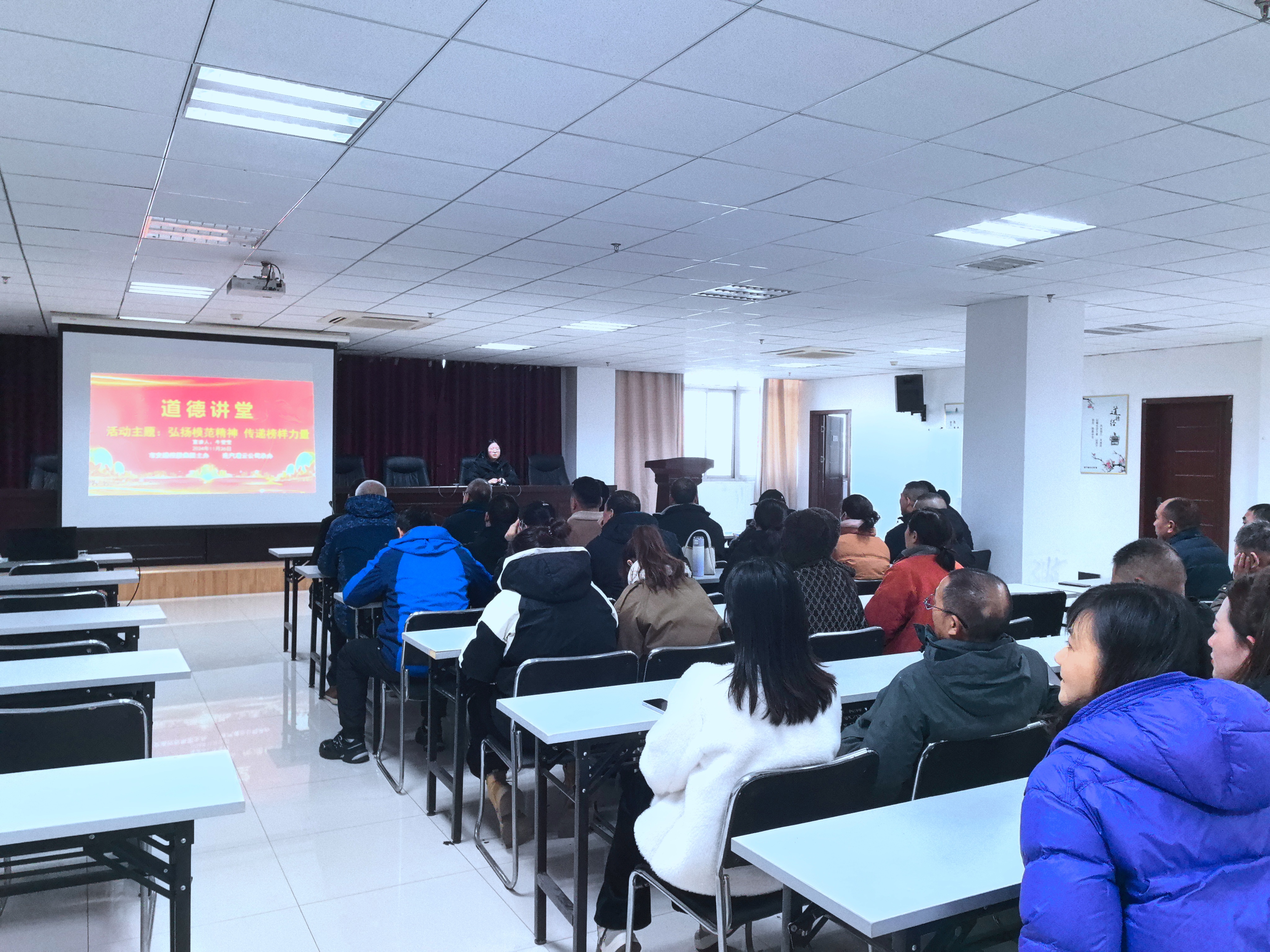 11月26日,連汽灌云公司舉辦以“弘揚模范精神 傳遞榜樣力量”為主題的道德講堂。公司黨員干部職工40余人參加活動。