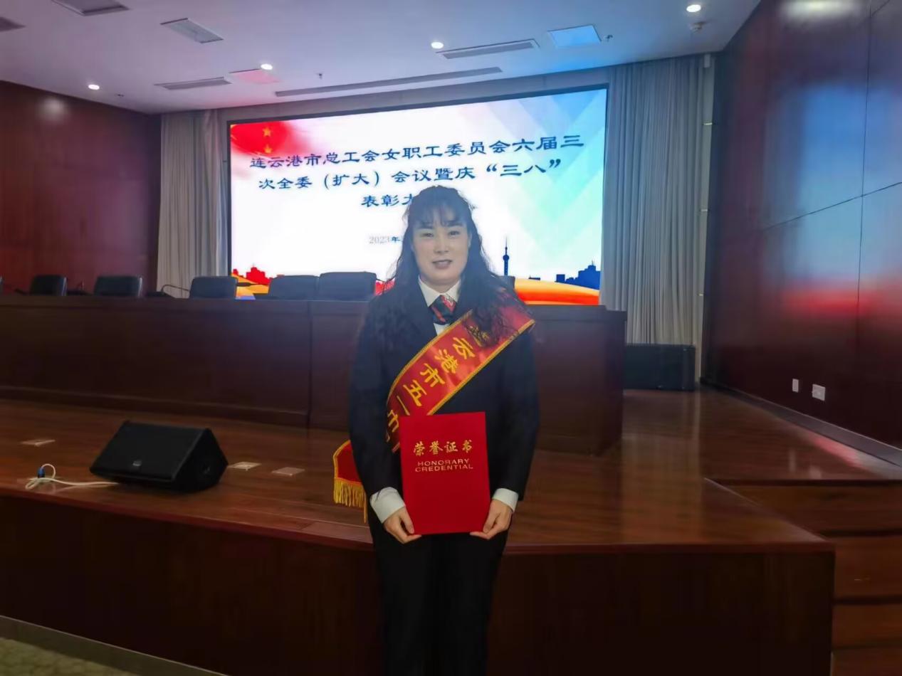 3月1日,連云港市總工會召開了2023年慶”三八”五一巾幗標兵(崗)獎表彰會議,會議總結(jié)部署全市工會女職工工作,宣讀了《關(guān)于表彰2023年度五一巾幗標兵(崗)的決定》,并現(xiàn)場為10個榮獲“五一巾幗標兵崗”代表、9名榮獲“五一巾幗標兵”代表頒發(fā)了獎牌、證書。江蘇海建公司仲梅被授予“連云港市五一巾幗標兵”榮譽稱號。