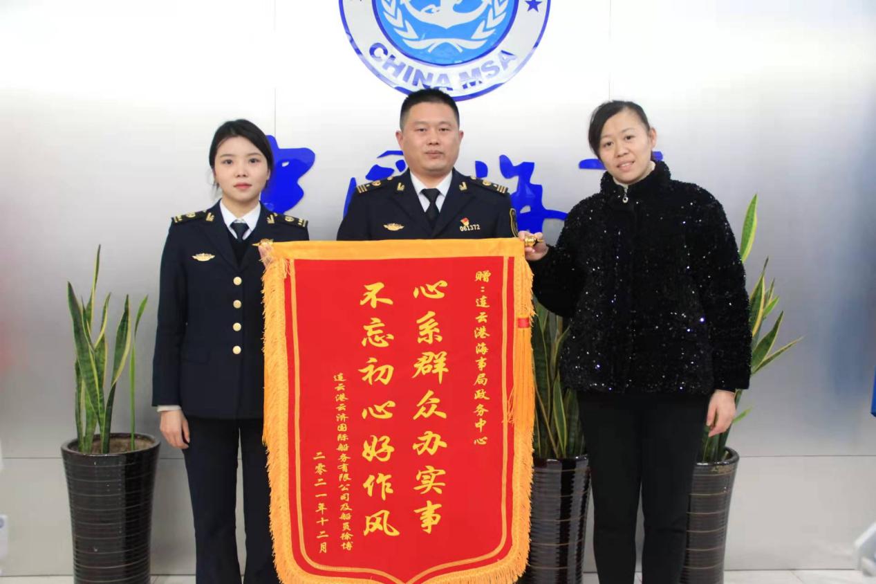 11月28日,物流云濟(jì)公司接船員徐博委托申辦化學(xué)品船貨物操作高級(jí)培訓(xùn)換證業(yè)務(wù)。當(dāng)天,業(yè)務(wù)員在申辦中發(fā)現(xiàn)船員所持證書化學(xué)品船貨物操作高級(jí)培訓(xùn)科目已過(guò)五年時(shí)效期,不能進(jìn)行更新?lián)Q證。公司及時(shí)與船員溝通進(jìn)一步了解情況,得知由于近年疫情影響,油化一體船業(yè)務(wù)驟減,船員近幾年只能在普通貨船工作,導(dǎo)致培訓(xùn)過(guò)時(shí)效期。了解情況后公司積極聯(lián)系到連云港海事局政務(wù)中心,咨詢相關(guān)政策。經(jīng)過(guò)多方溝通后,在連云港海事局政務(wù)中心葛景勇主任幫助下,陳佳琳科員通過(guò)“綠色通道”加急辦理,12月27日海員徐博化學(xué)品船貨物操作高級(jí)培訓(xùn)資格證申辦完成,為了表示感激之情,云濟(jì)公司及船員聯(lián)名送上錦旗。