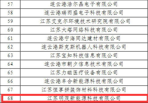 2022年12月19日,《連云港高新區(qū)高新技術(shù)企業(yè)入庫(kù)培育實(shí)施細(xì)則(試行)》公示期結(jié)束,江蘇明茂新能源科技有限公司(以下簡(jiǎn)稱“明茂公司”)成功加入連云港高新區(qū)高新技術(shù)企業(yè)培育庫(kù)。