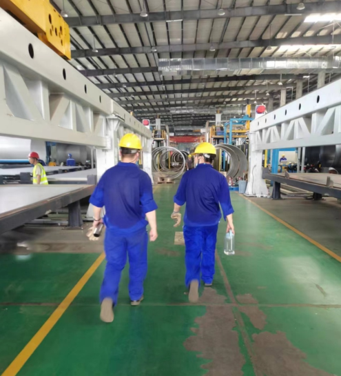 躲過(guò)烈日炙烤,室內(nèi)作業(yè)也并不輕松。嚴(yán)格的勞動(dòng)防護(hù)用品穿戴要求以及大功率壓機(jī)的長(zhǎng)時(shí)間運(yùn)轉(zhuǎn),加上車(chē)間溫度高、濕度大,室內(nèi)就猶如大蒸籠。鉆到筒體內(nèi)焊接打磨的工人們,需要在里面工作數(shù)個(gè)小時(shí),一滴滴汗水不斷從臉頰、脖子、后背劃過(guò),這樣的“蒸桑拿”式體驗(yàn),是車(chē)間工人的家常便飯。