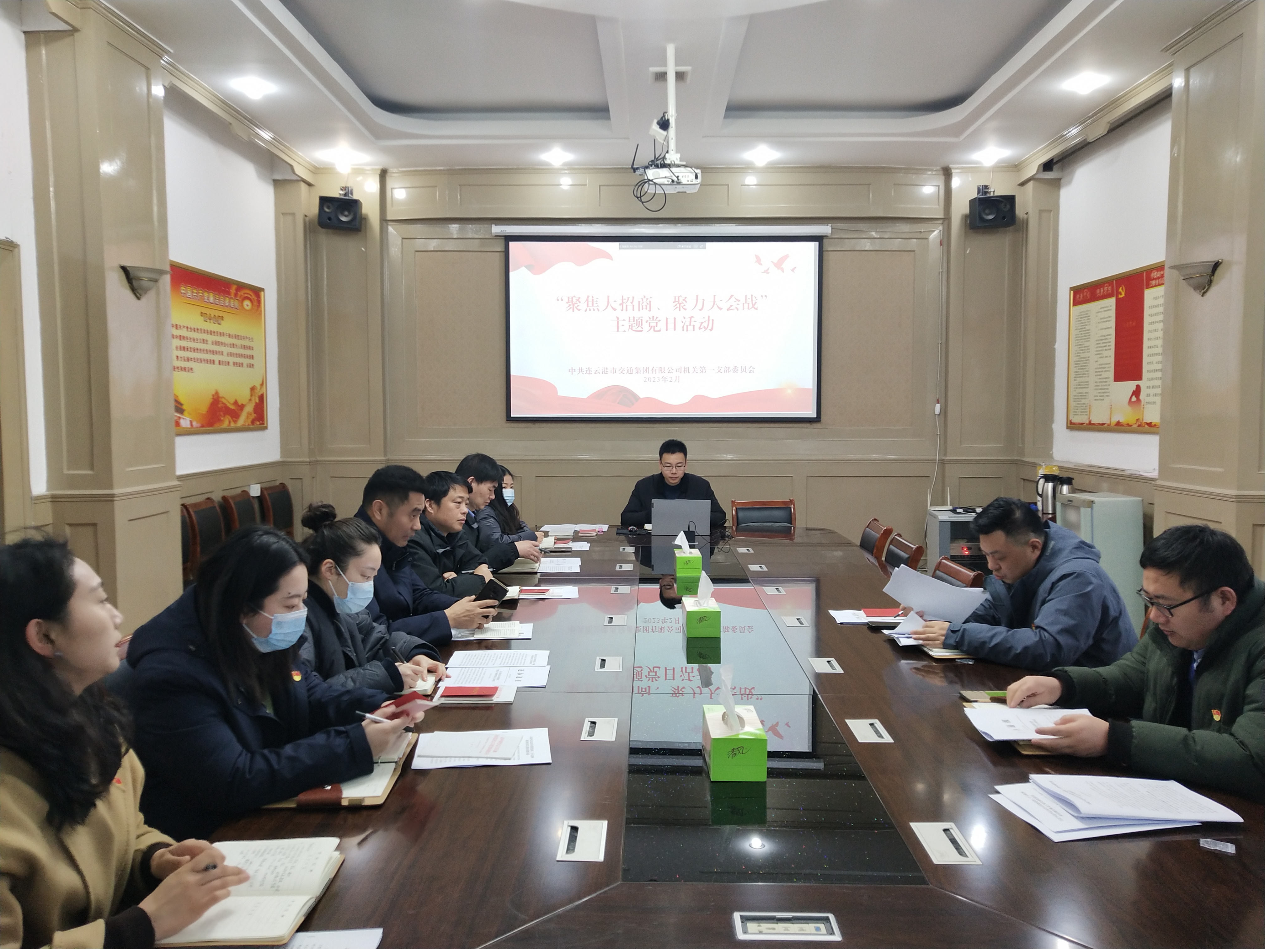 為深入學(xué)習(xí)貫徹黨的二十大精神,把集團(tuán)全體黨員干部思想、行動統(tǒng)一到市委“招商引資、項(xiàng)目建設(shè)大會戰(zhàn)”的部署上來,2月24日上午,交通集團(tuán)開展“聚焦大招商、聚力大會戰(zhàn)”主題黨日活動,各黨支部圍繞主題分別開展交流研討活動。