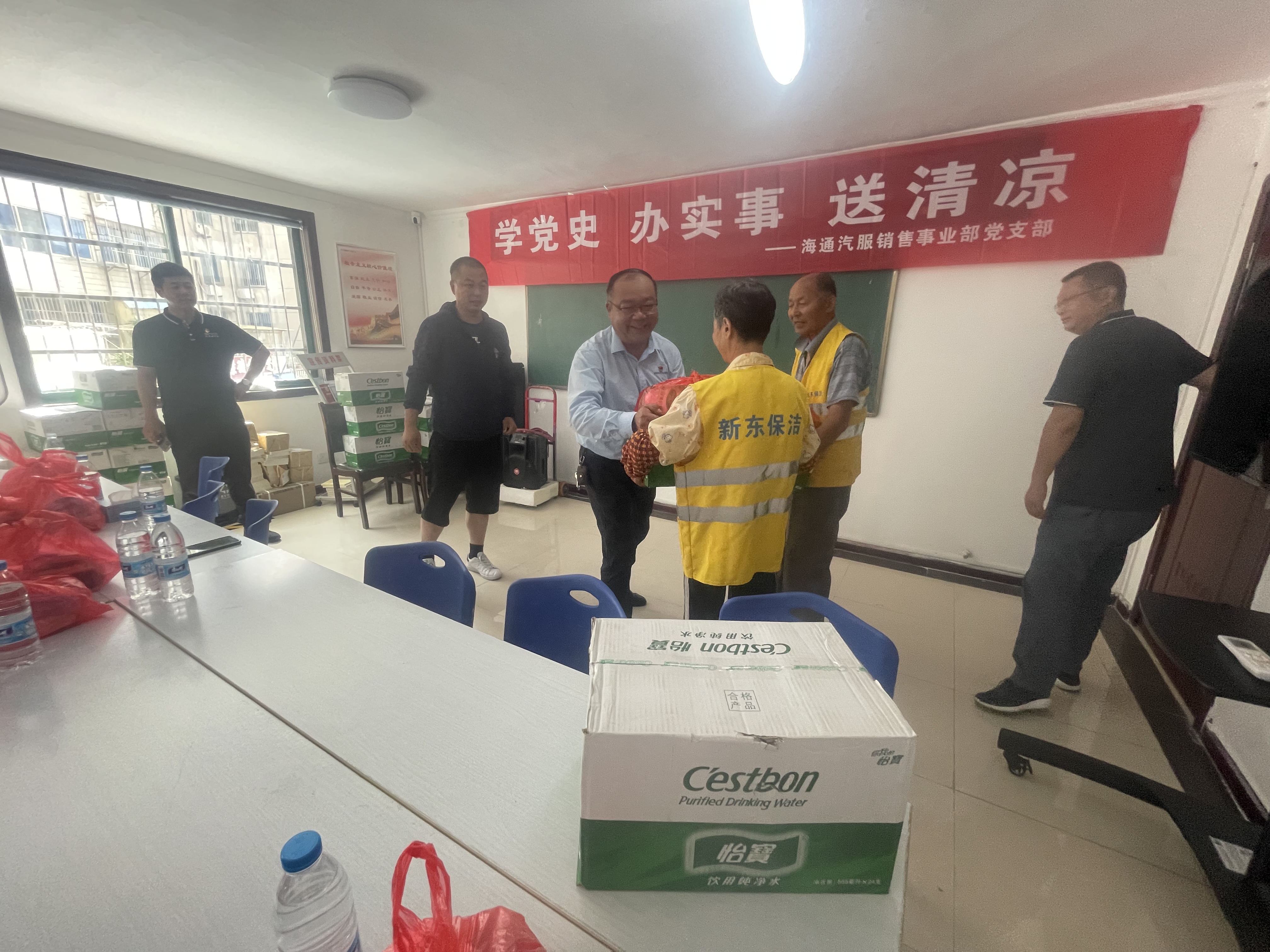 入伏以來,港城持續(xù)高溫,酷暑難耐,馬路上的環(huán)衛(wèi)工人們高溫下依舊堅守崗位,用辛勤和汗水守衛(wèi)著港城干凈衛(wèi)生,7月23日上午,汽車銷售事業(yè)部黨支部聯(lián)合市海州區(qū)東風(fēng)社區(qū)開展“學(xué)黨史 辦實事 送清涼”慰問活動,為社區(qū)內(nèi)奮斗在一線的環(huán)衛(wèi)工人送上了一份清涼和一份關(guān)懷。