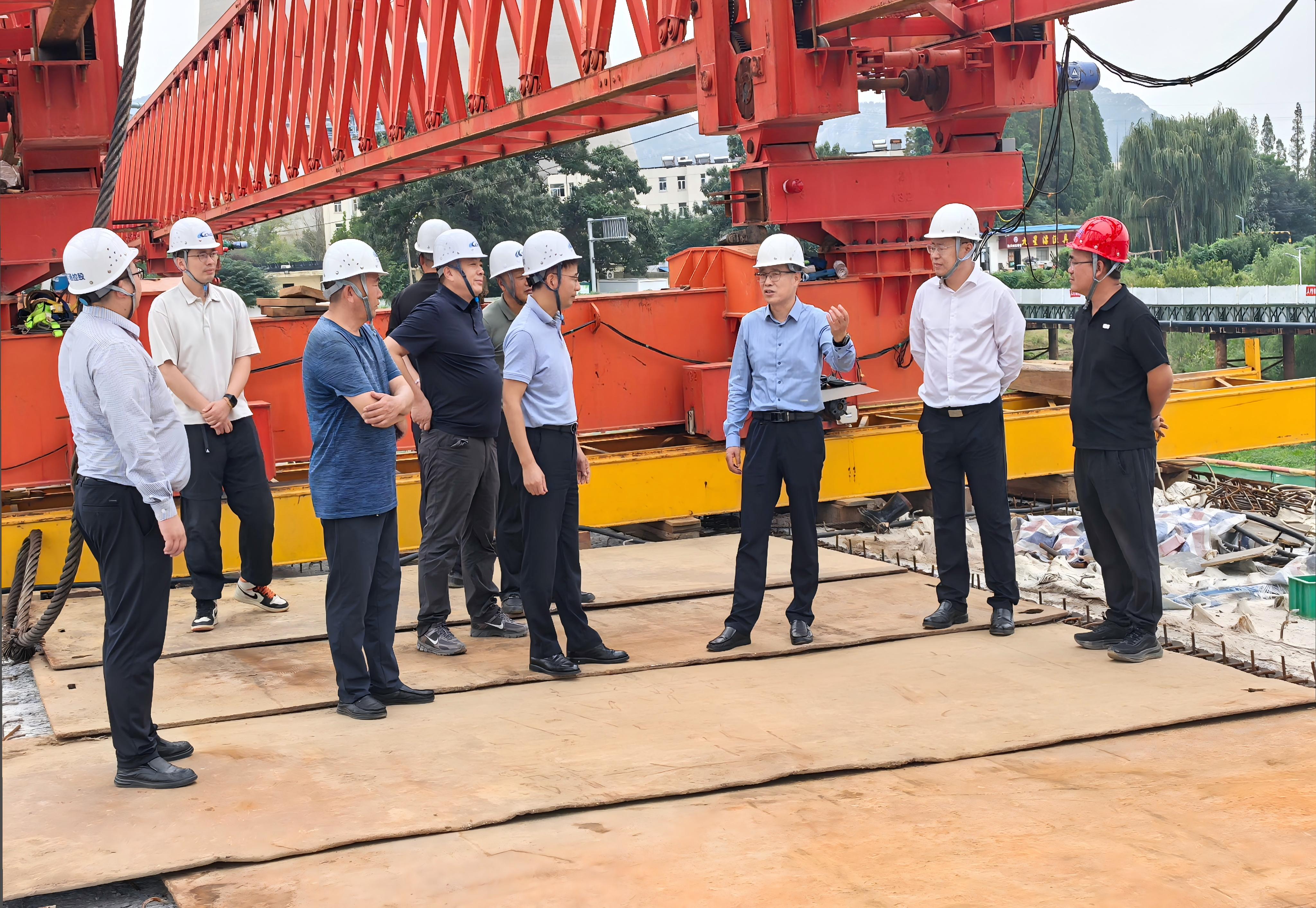 隨后,視察組來到洪門大橋項目現場,聽取項目負責人關于施工進展的匯報。大橋目前正處于沖刺攻堅階段,仲偉濤強調,要始終堅持“質量第一、安全至上”原則,在搶工期、趕進度的同時,嚴格把控橋梁結構安全、橋面鋪裝質量等核心環(huán)節(jié);要進一步優(yōu)化施工方案,科學調配人力物力資源,緊盯關鍵節(jié)點,確保項目如期通車;要筑牢安全生產防線,加強現場施工人員安全培訓與實操管理,從源頭杜絕各類安全隱患。