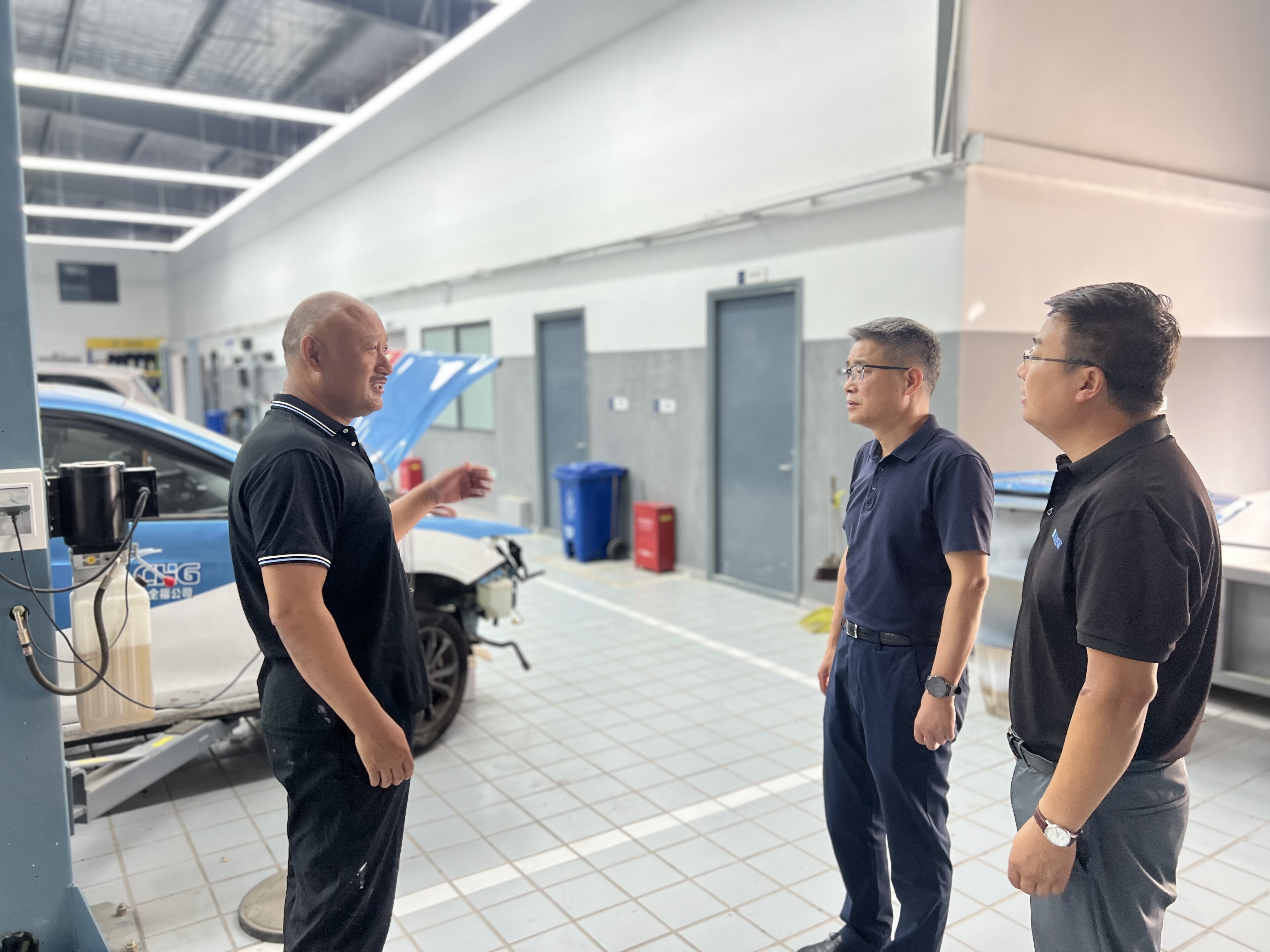 在比亞迪運(yùn)營(yíng)店維修車間,慰問(wèn)組實(shí)地查看通風(fēng)降溫設(shè)備運(yùn)行狀況,詳細(xì)了解維修作業(yè)流程和勞動(dòng)保護(hù)措施。仲偉濤與"全國(guó)五一勞動(dòng)獎(jiǎng)?wù)?獲得者何錫忠親切交流,勉勵(lì)他充分發(fā)揮勞模示范作用,帶領(lǐng)團(tuán)隊(duì)在確保防暑安全的前提下,積極參與勞動(dòng)競(jìng)賽,打造更多精品工程。同時(shí)要求企業(yè)切實(shí)履行主體責(zé)任,不斷改善職工工作環(huán)境,提升職工生活品質(zhì)。