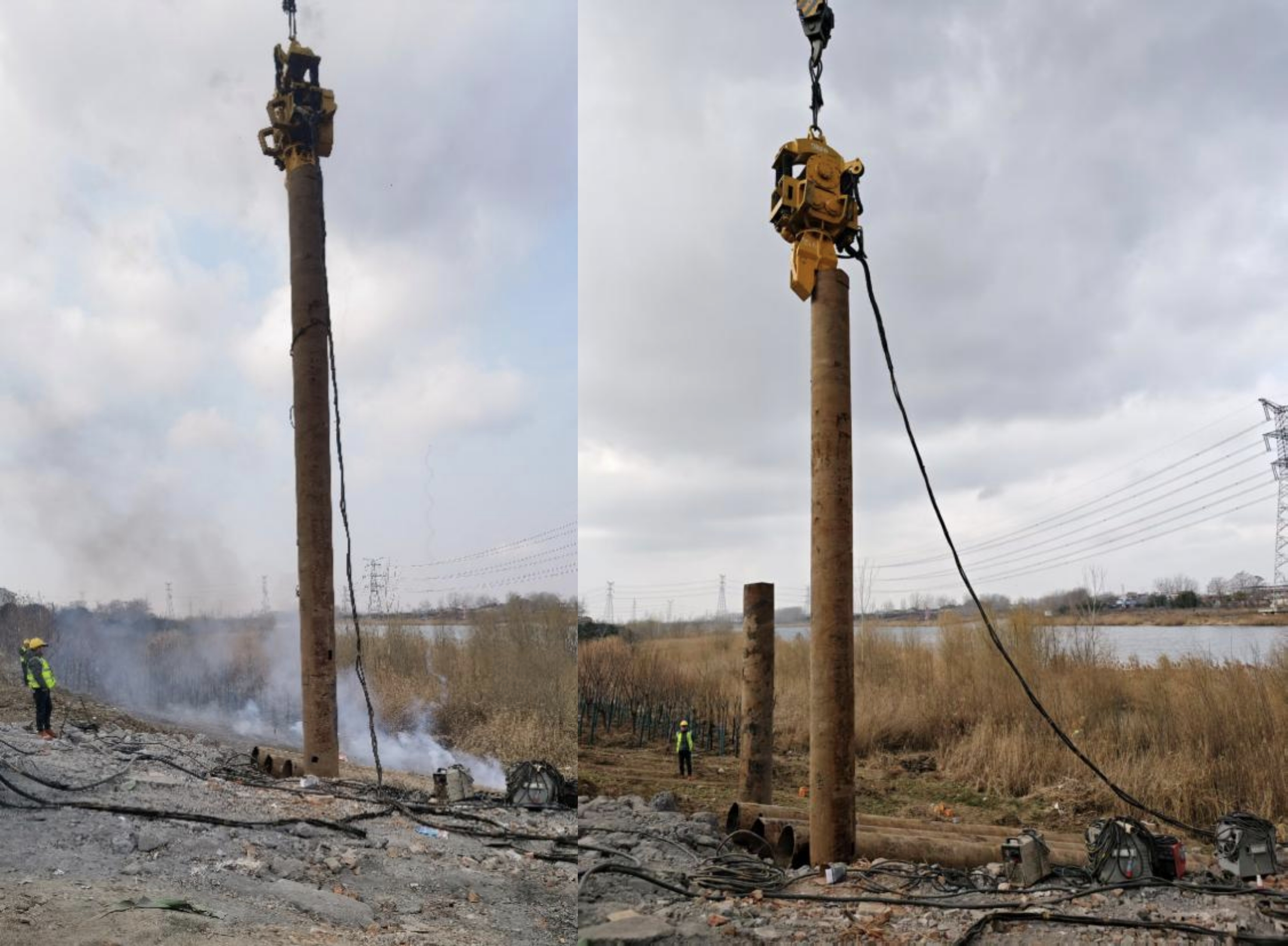 在施工現(xiàn)場(chǎng),打樁作業(yè)無疑是整個(gè)施工的關(guān)鍵環(huán)節(jié)。施工人員身著統(tǒng)一且醒目的工作服,頭戴安全帽,嚴(yán)守崗位,各司其職。打樁機(jī)高大的機(jī)身矗立在施工現(xiàn)場(chǎng),隨著樁錘的震動(dòng),一根根鋼管樁被精準(zhǔn)地打入地下?,F(xiàn)場(chǎng)指揮人員通過對(duì)講機(jī)與樁機(jī)操作人員保持實(shí)時(shí)溝通,密切關(guān)注打樁的各項(xiàng)參數(shù),確保每一根鋼管樁的垂直度和入土深度都嚴(yán)格符合設(shè)計(jì)要求。當(dāng)遇到地下復(fù)雜地質(zhì)狀況,施工團(tuán)隊(duì)及時(shí)調(diào)整施工工藝,有效克服困難,保障施工進(jìn)度的順利推進(jìn)。