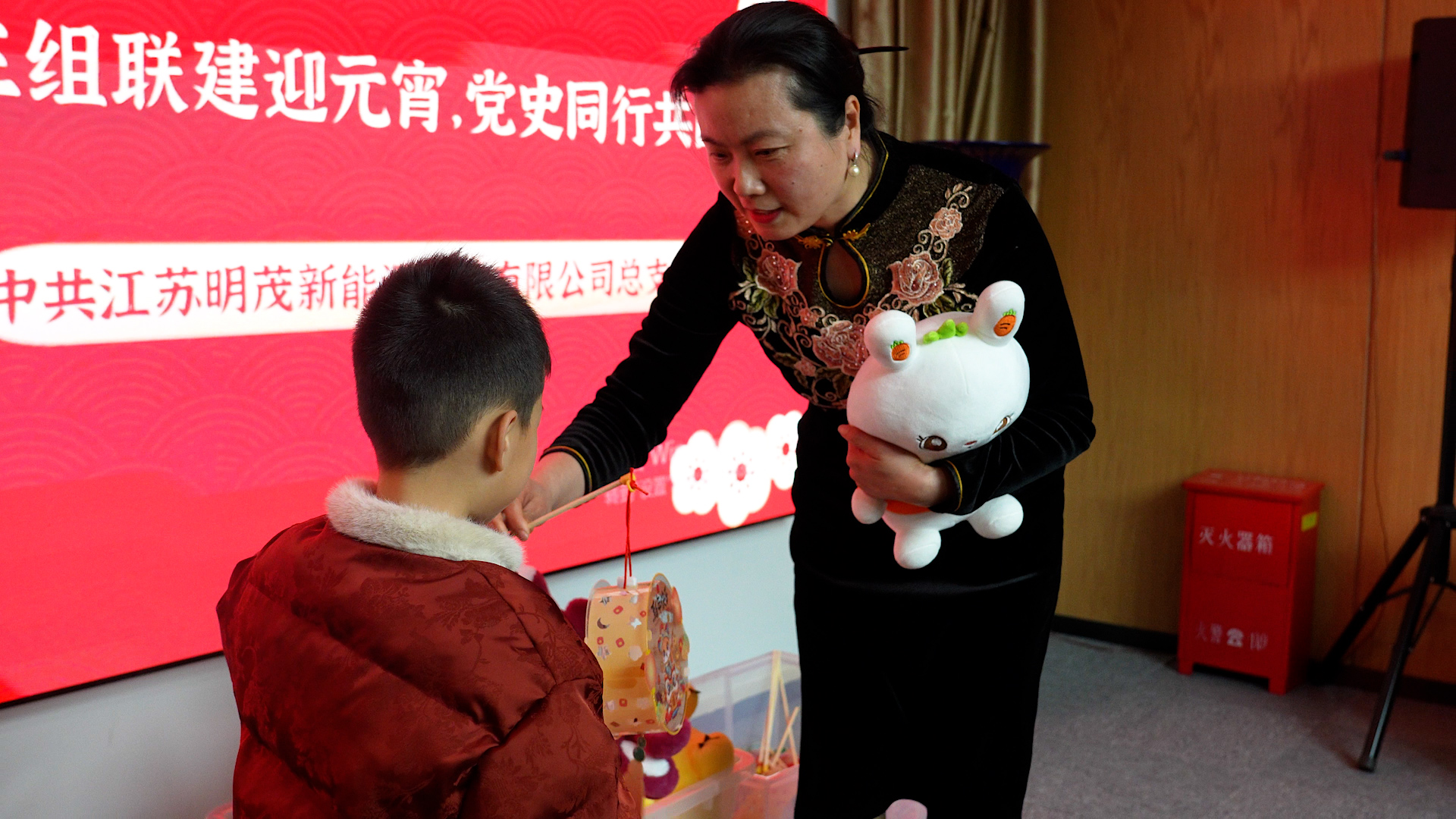 活動伊始,明茂公司副總經理、工會主席蔣月琴給現場職工子女贈送元宵節(jié)燈籠和玩偶。小朋友們都有說有笑,臉上洋溢著喜悅的笑容。隨后,由職工及職工子女代表帶著大家學習了元宵節(jié)的風俗習慣和元宵節(jié)黨史小故事。大家在傳統(tǒng)節(jié)日文化的多彩底蘊中,共同回顧了中國共產黨的百年光輝歷程,在黨性教育中,汲取了奮進力量。