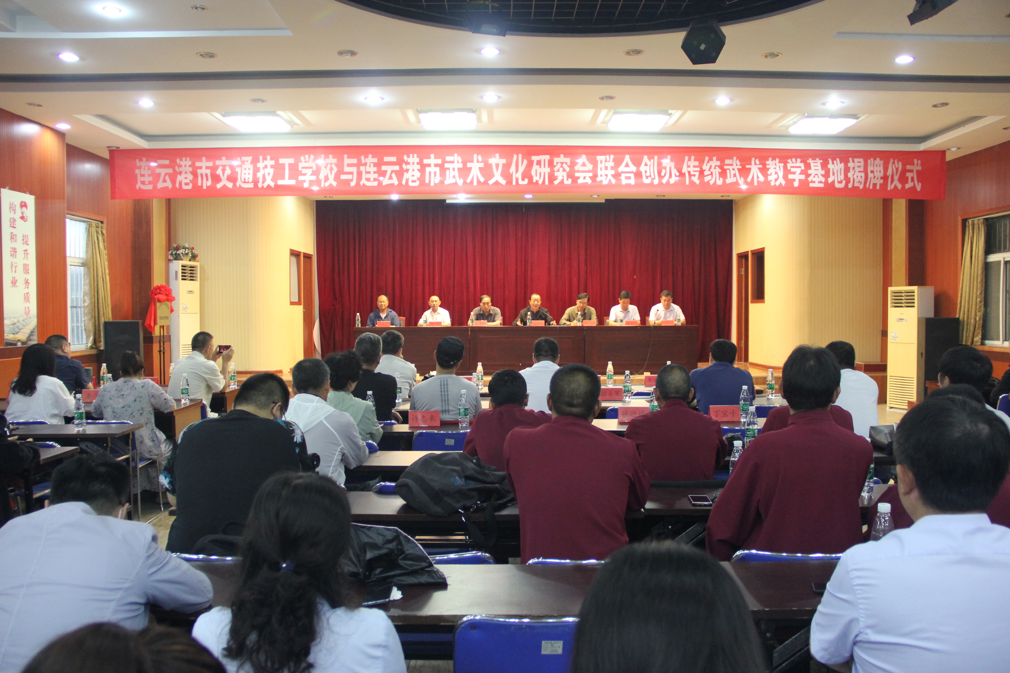 2020年7月12日,連云港市交通技工學(xué)校與連云港市武術(shù)文化研究會聯(lián)合舉辦“傳統(tǒng)武術(shù)教學(xué)基地”揭牌儀式。原連云港市人大副主任、市武術(shù)文化研究會名譽(yù)主席謝建明,市交通控股集團(tuán)副總經(jīng)理李樹軍,市社科聯(lián)副主席周一云,市民政局社團(tuán)處處長王愛民,交培公司黨委書記、總經(jīng)理?xiàng)罹S洲,市武術(shù)文化研究會會長王慶喜,中國時代先鋒論壇秘書長周德等領(lǐng)導(dǎo)出席儀式,交培公司員工參加儀式。儀式由楊維洲主持。