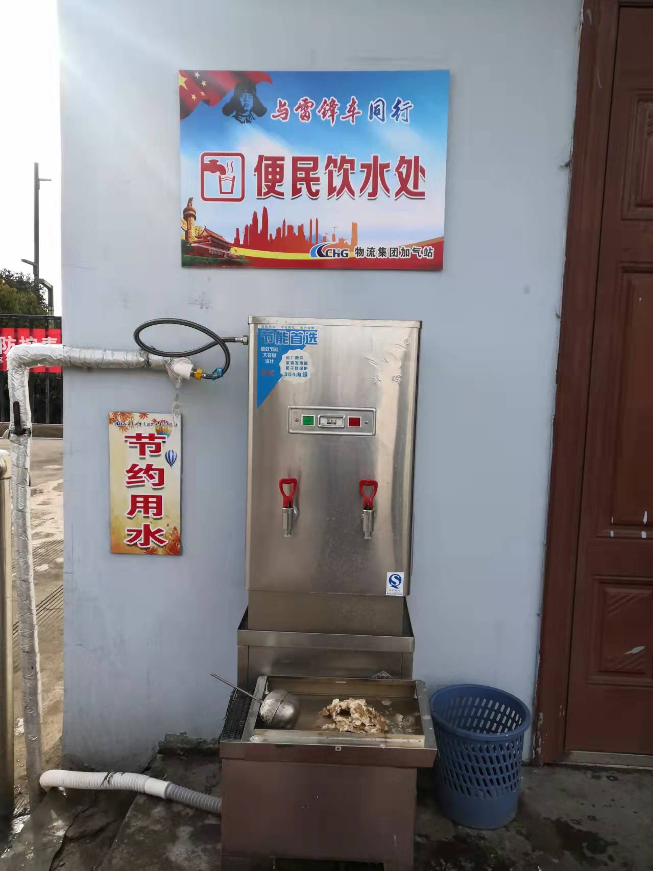 全年無(wú)休的便民飲水機(jī),24小時(shí)隨時(shí)待命,為辛勤工作的環(huán)衛(wèi)工人、快遞員和往來(lái)駕駛員師傅提供全天候免費(fèi)茶水服務(wù),讓他們?cè)诤涞亩?/span>感受到加氣站給他們送上的一絲溫暖!這是加氣站黨支部為民辦實(shí)事中最有意義的一件,雖然加氣站定期對(duì)便民飲水機(jī)進(jìn)行清理,但由于長(zhǎng)時(shí)間、不間斷工作,水垢依然很厚。安全運(yùn)營(yíng)部人員關(guān)閉水閥和電路開關(guān),更換浮球并張貼“維護(hù)清理中”通知。