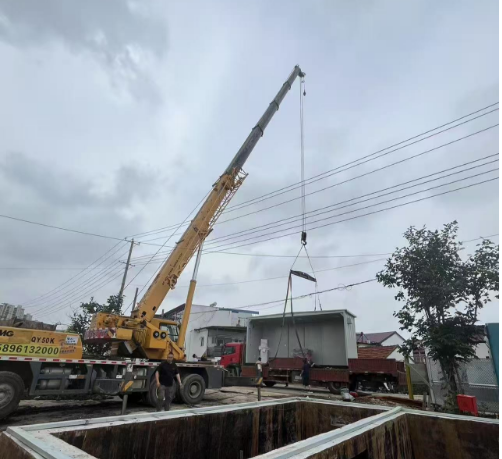 近日,海建公司北廣場項目部雨污水泵站預(yù)制艙順利吊裝到位,標(biāo)志著該項目關(guān)鍵節(jié)點(diǎn)順利完成,為泵站的安裝及工程建設(shè)奠定堅實基礎(chǔ)。