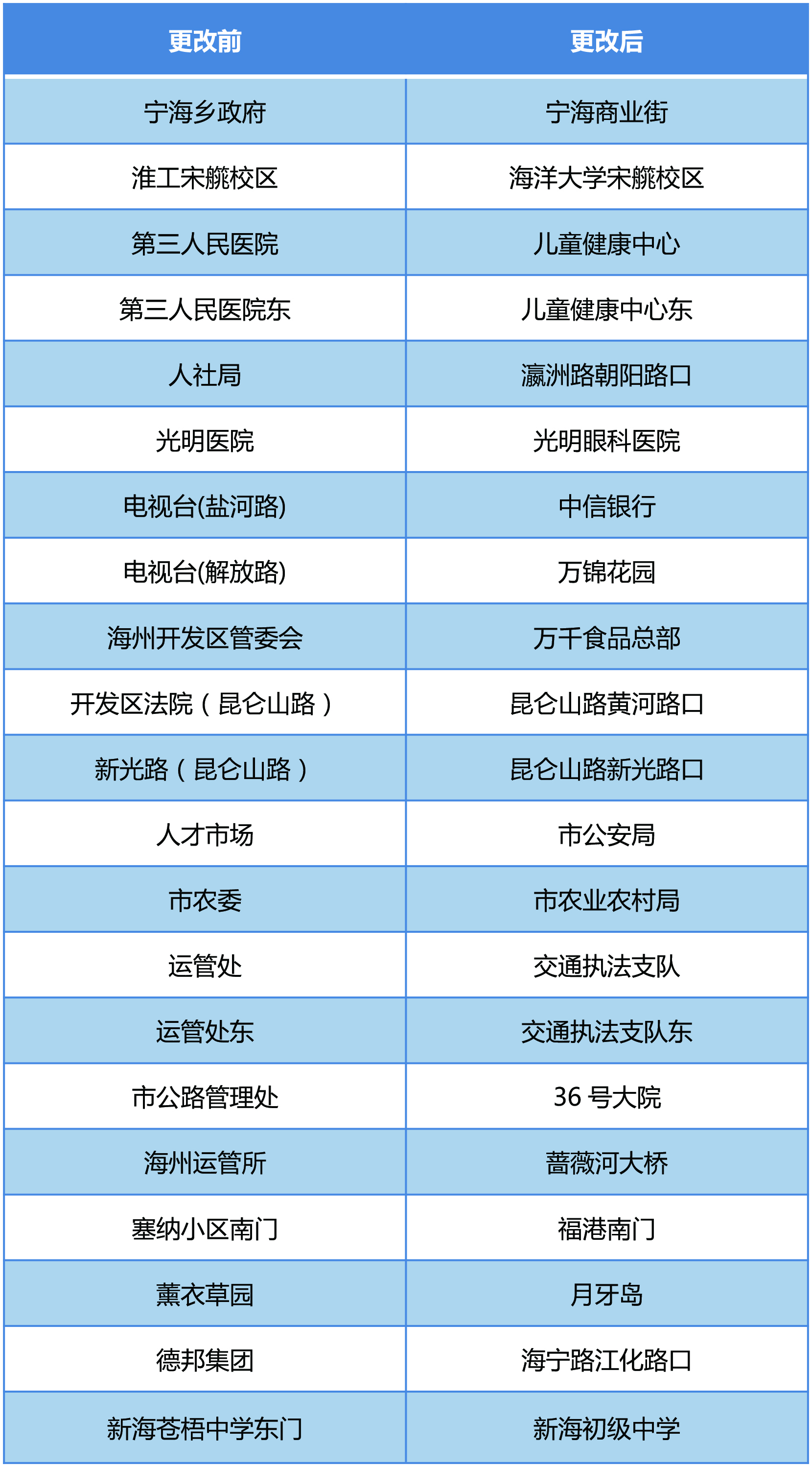 此次更改名稱(chēng)的21個(gè)站點(diǎn)具體為: