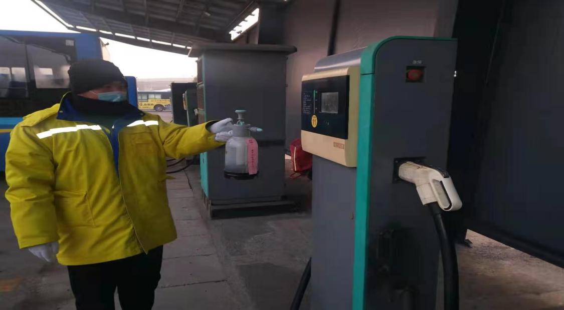 二是做好消毒物品配備。東部充電班組對各個場站的消毒液、噴霧器進行檢查,粘貼標識并按要求進行存放。及時發(fā)放消毒口罩。督促每日當班人員進行體溫檢測、佩戴口罩及對充電樁位進行消毒并記錄存檔。