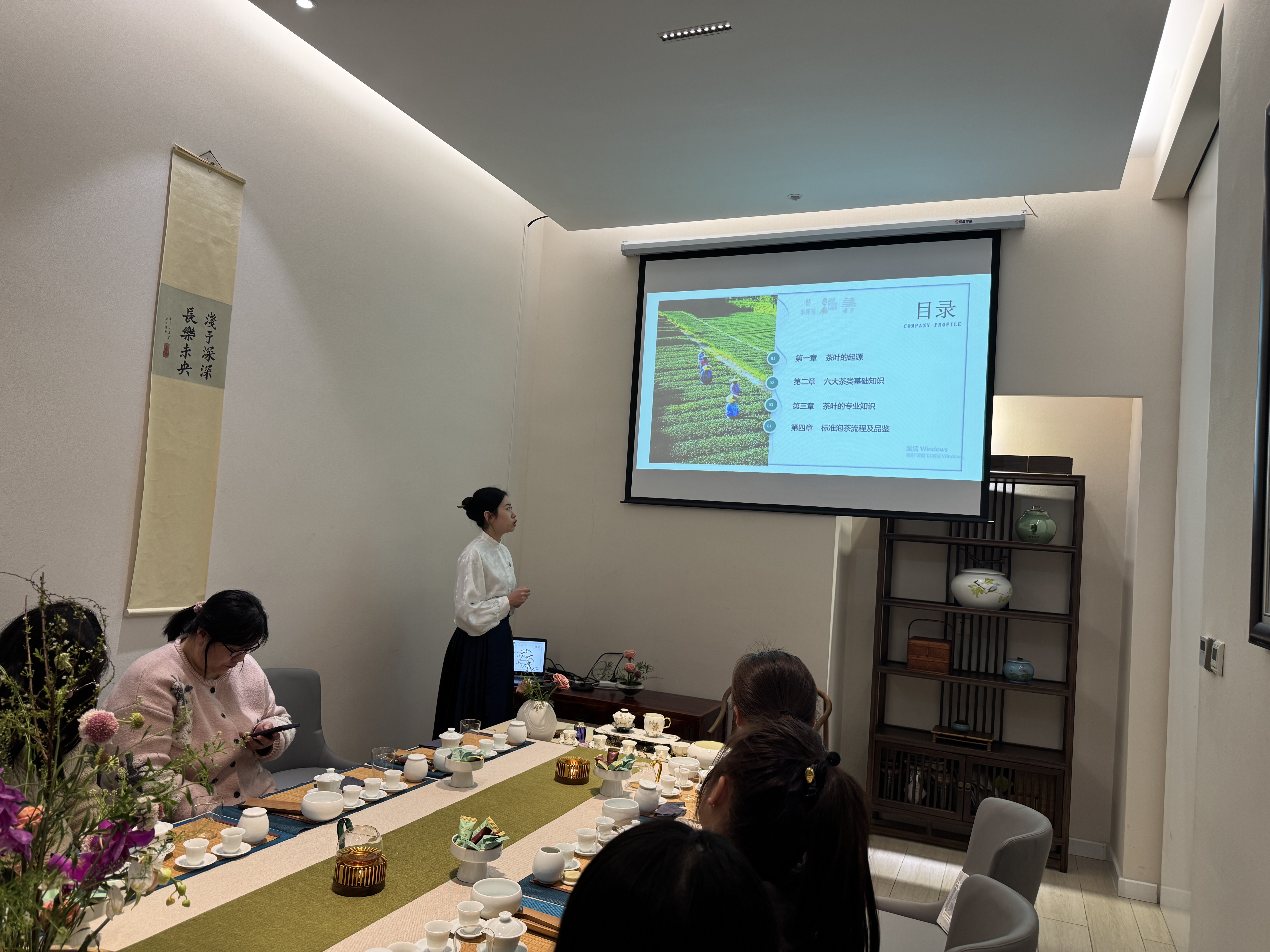 活動(dòng)伊始,悠揚(yáng)的古琴聲緩緩響起,為現(xiàn)場增添了一份寧靜與雅致。茶藝師身著傳統(tǒng)服飾,為大家?guī)砹艘粓鼍实牟杷嚤硌?。從茶葉的選擇到?jīng)_泡的技巧,茶藝師細(xì)致講解,女職工們不僅學(xué)習(xí)了茶文化知識(shí),還親身體驗(yàn)了泡茶的樂趣。茶香裊裊中,大家品味著清茶的甘醇,感受著茶文化的深厚底蘊(yùn)。