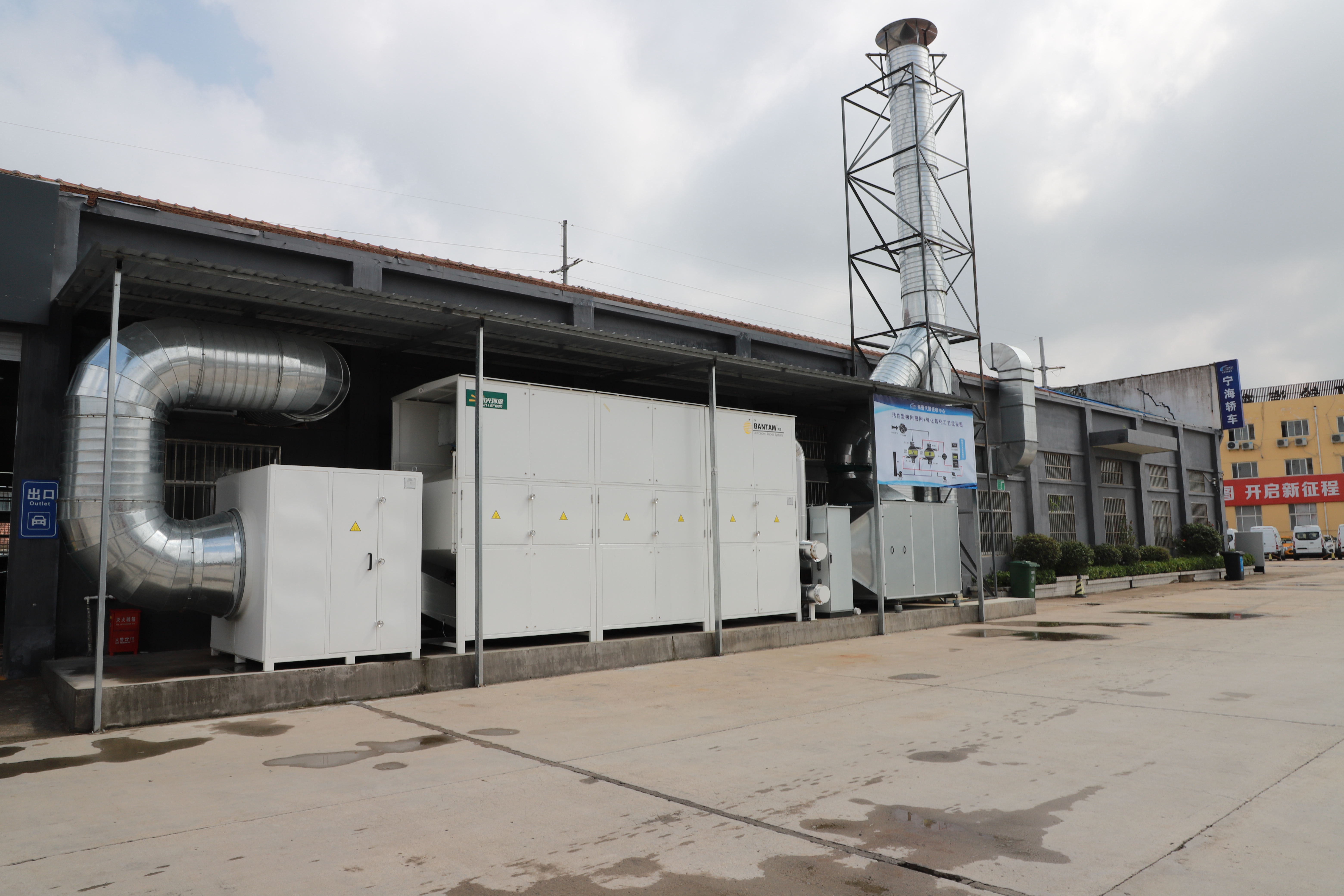 海通汽服公司投入資金100余萬元,將原寧海公司汽車修理廠改建成我市首家綠色環(huán)保汽車鈑噴服務(wù)中心,占地面積約1500平米,擁有13個(gè)作業(yè)工位,設(shè)計(jì)年產(chǎn)能24000板面,維修車輛可達(dá)6000臺(tái)次。設(shè)置2間烤漆房、2間快烤房、3間打磨間,環(huán)保設(shè)施由清華大學(xué)環(huán)境學(xué)院參與設(shè)計(jì)安裝,建成鈑噴“綠島”。噴烤漆房廢氣治理采用的活性炭吸附+共享催化氧化的高效處理技術(shù),活性炭飽和后的脫附再生通過“移動(dòng)脫附車”完成,實(shí)現(xiàn)了廢氣處理設(shè)施的可持續(xù)運(yùn)行。對(duì)于汽車噴漆、烤漆產(chǎn)生的廢氣去除效率高于95%,每年可減少揮發(fā)性有機(jī)物(VOCs)排放量約11.4噸。