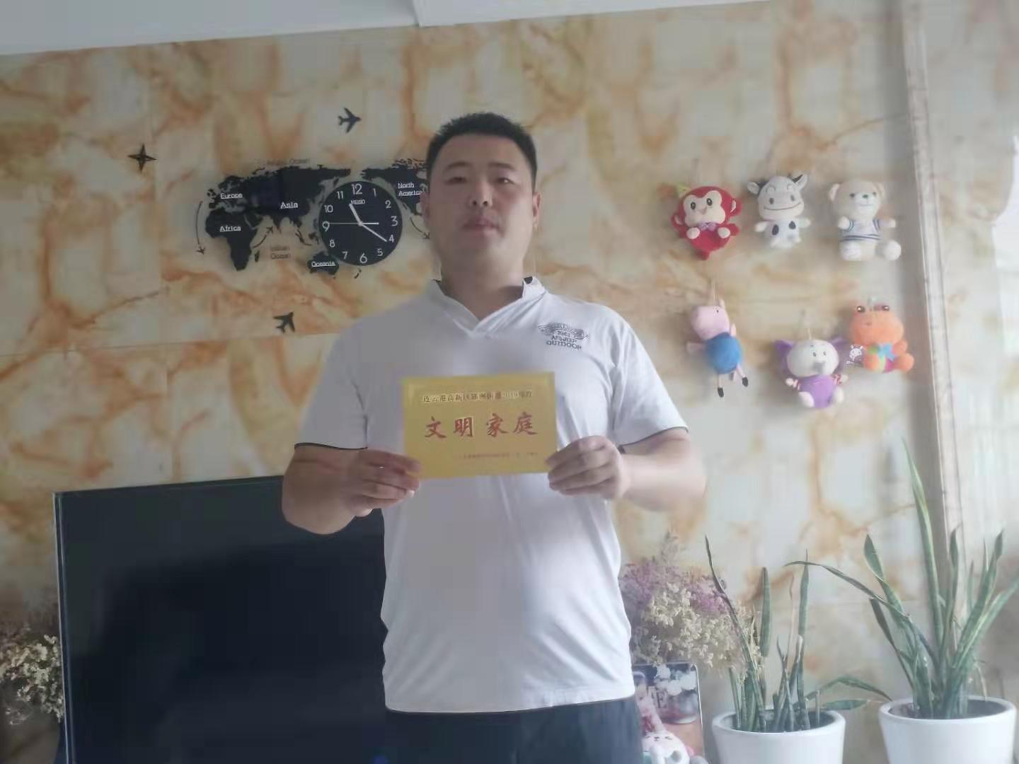 鑼鼓喧天、歡聲笑語(yǔ)。7月24日早上,郁州街道魏主任帶領(lǐng)鑼鼓隊(duì),敲鑼打鼓來(lái)到長(zhǎng)途公司職工劉波家中,親手將“文明家庭”榮譽(yù)牌送到劉波手中,表彰他為“建設(shè)美麗港城、構(gòu)建文明家園”所做出的成績(jī)。