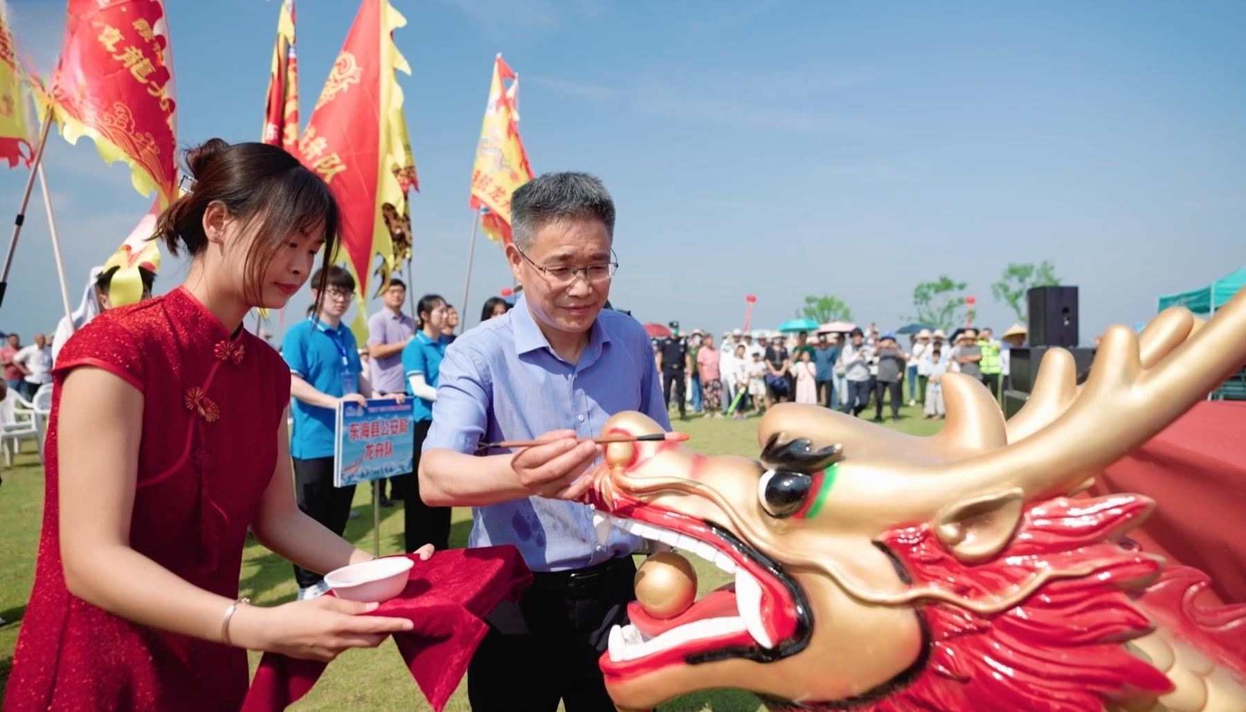 6月22日,“交通控股杯”連云港市第二屆海陵湖龍舟比賽在石梁河水庫漁人碼頭精彩開賽。集團黨委書記、董事長仲偉濤參加開幕儀式并為龍舟點睛。