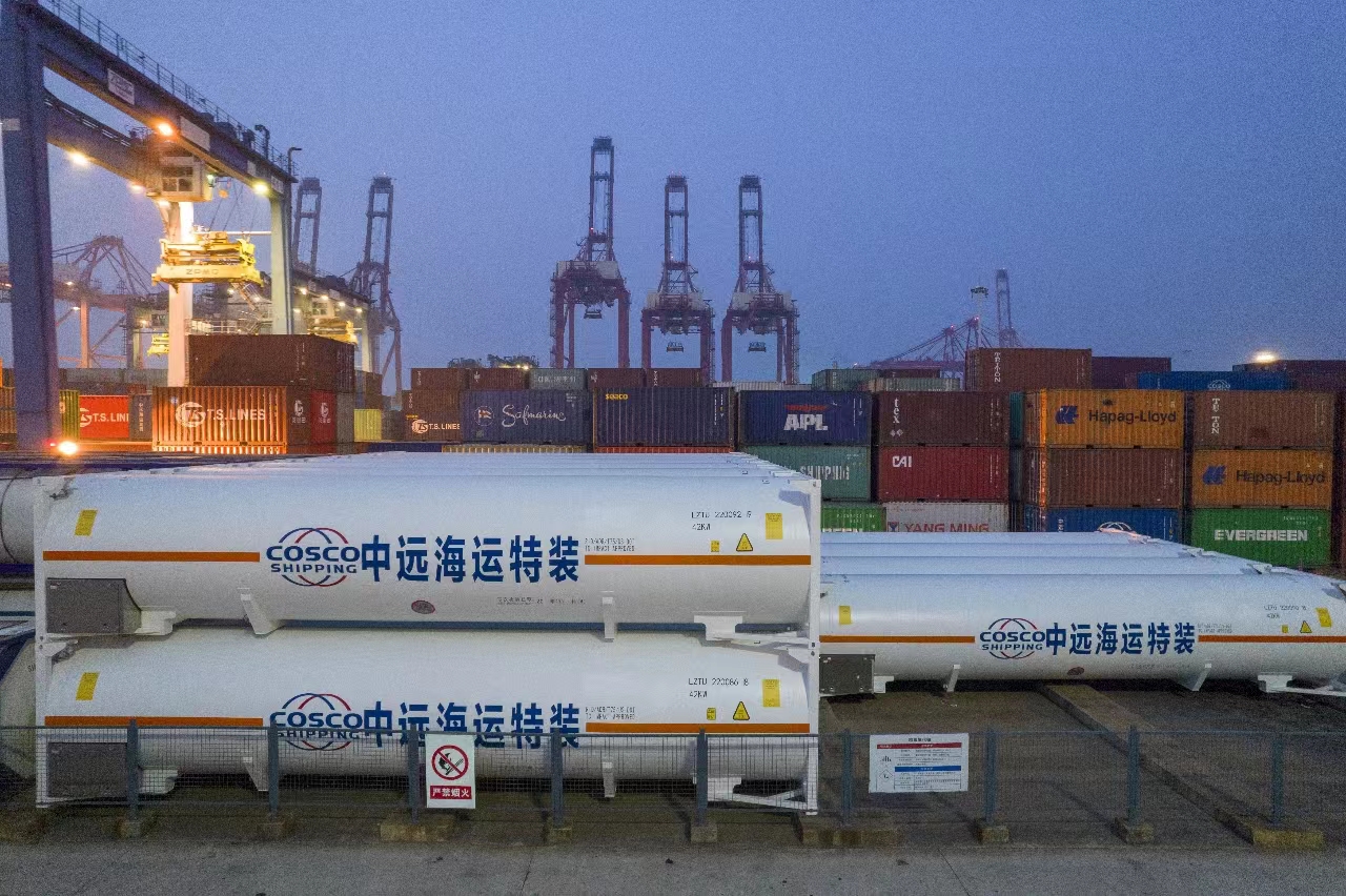 10月26日上午,物流集團(tuán)16個(gè)LNG罐箱于連云港中遠(yuǎn)海運(yùn)特裝公司正式發(fā)運(yùn),開啟連云港至加拿大溫哥華行程。本批量通過罐箱模式采購的LNG返港后,將直接為我市交通及工業(yè)用戶提供冬季供氣服務(wù)。