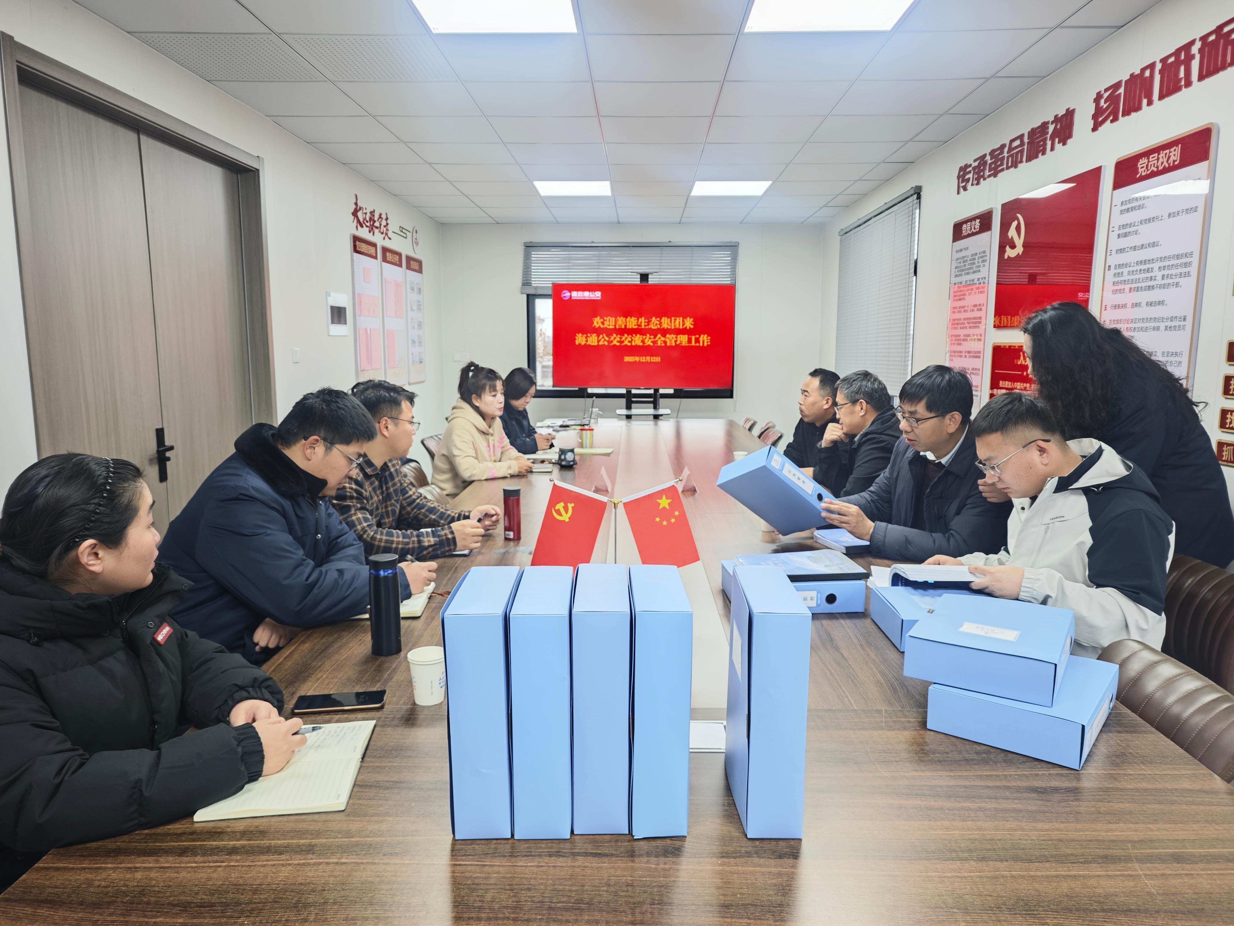 12月12日,公交集團權屬海通公交公司聯(lián)合善能生態(tài)集團,開展安全交流活動。善能集團安全部門一行人前來交流,海通公交公司支部書記、經(jīng)理吳祥瑜,副經(jīng)理解學榮,工會主席孫海棠,安全科人員及兄弟單位安全部門人員參與交流。