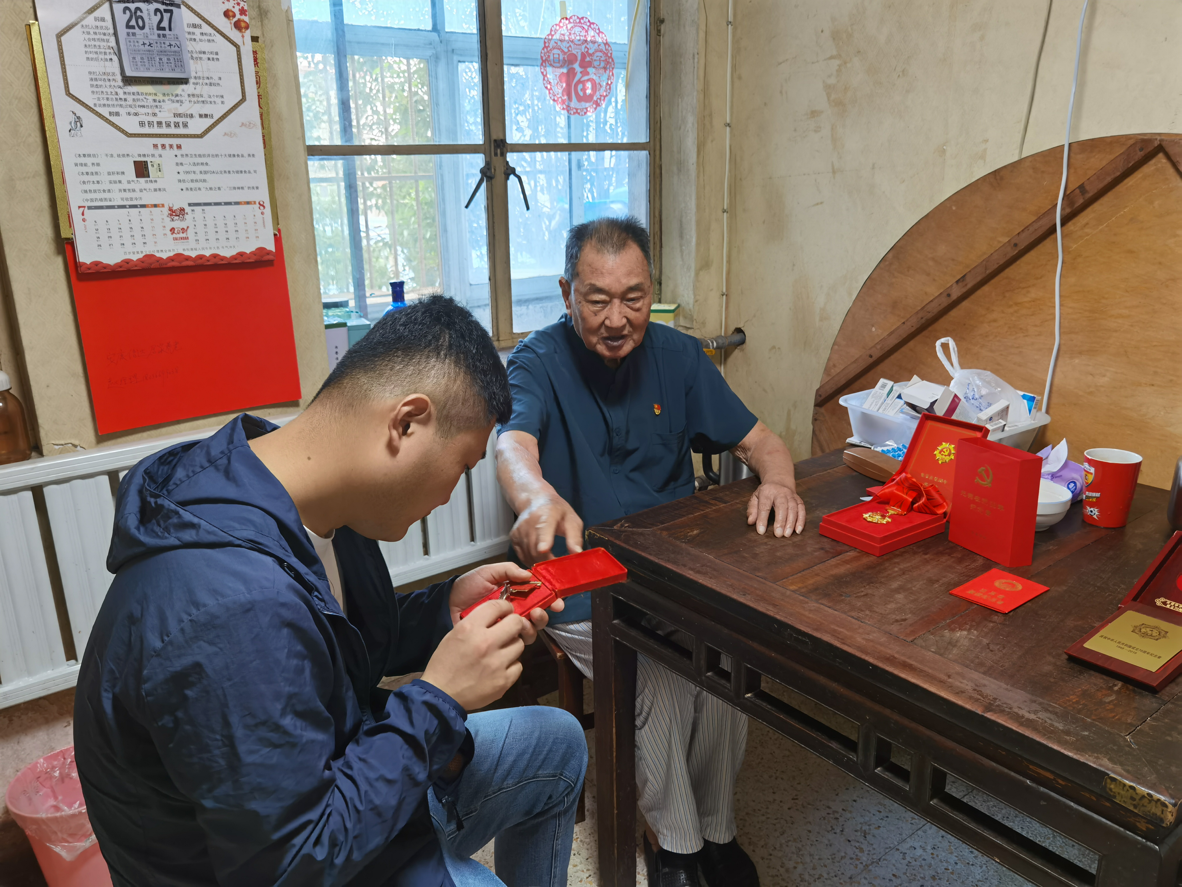 在90歲的老黨員王壽玉家中,租賃事業(yè)部的黨員、積極分子看到了王老“光榮在黨50年”紀念章、“全國交通系統(tǒng)先進生產者”等榮譽。這一枚“光榮在黨50年”紀念章,承載著老黨員對黨的初心,也是對他們砥礪初心本色、踐行使命擔當?shù)淖罡哒J可。隨后大家與老人促膝交流,詢問老人的身體狀況和生活情況,傾聽他追憶難忘的奮斗歲月、講述如今的幸福生活。這位有著六十多年黨齡的老黨員離休后仍十分關心企業(yè)發(fā)展的情況,也喜愛和年輕人交流,并堅持每天閱讀,參與黨史相關書籍學習。黨員們紛紛表示,要向老黨員學習,傳承優(yōu)良作風,永葆共產黨員政治本色,為企業(yè)發(fā)展加油鼓勁、建言獻策。