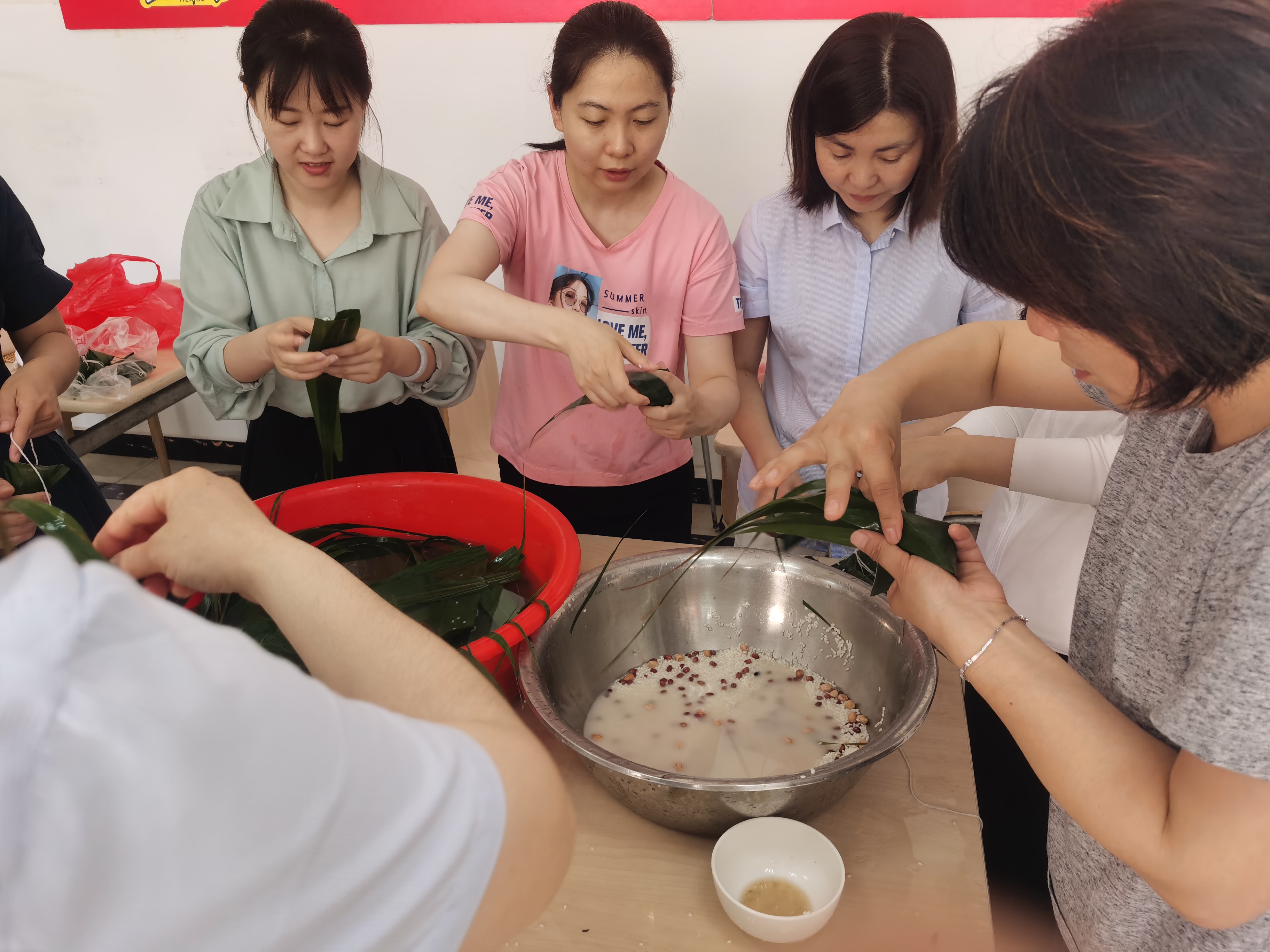 下午2點,參加活動的機關(guān)及各權(quán)屬單位共20余名職工到達餐廳,粽葉、糯米、紅棗、紅豆、花生、細繩等材料早已準備就緒,大家圍在一起,興趣盎然的包起了粽子?;顒又?,高手們巧手翻飛,一邊包粽子,一邊相互比較誰包的粽子更有型,新手們虛心向技術(shù)嫻熟的前輩大姐們學習包粽子的技巧,大家共同動手,經(jīng)過兩個多小時的努力,一個個餡多個大、香甜味美的粽子“新鮮出爐”了?;顒蝇F(xiàn)場有說有笑,處處洋溢著濃郁的節(jié)日氣氛。盡管大家包粽子的技術(shù)參差不齊,但大家的談笑聲一次次掀起了活動現(xiàn)場的高潮。