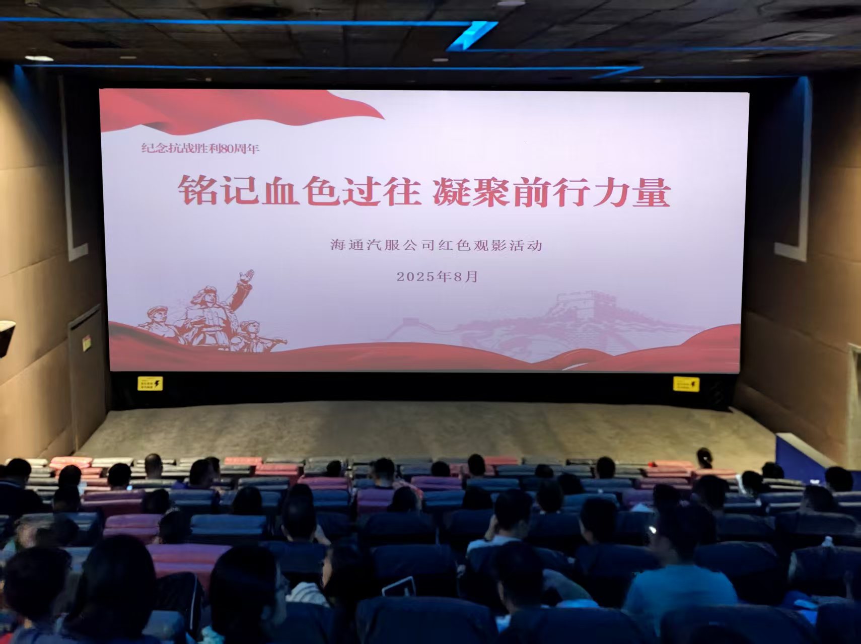 為紀念中國人民抗日戰(zhàn)爭暨世界反法西斯戰(zhàn)爭勝利80周年,深化愛國主義教育,8月15日,海通汽車服務(wù)公司組織開展“銘記血色過往、凝聚前行力量”主題紅色觀影活動,通過觀影引導(dǎo)干部職工重溫抗戰(zhàn)歷史,傳承紅色基因。