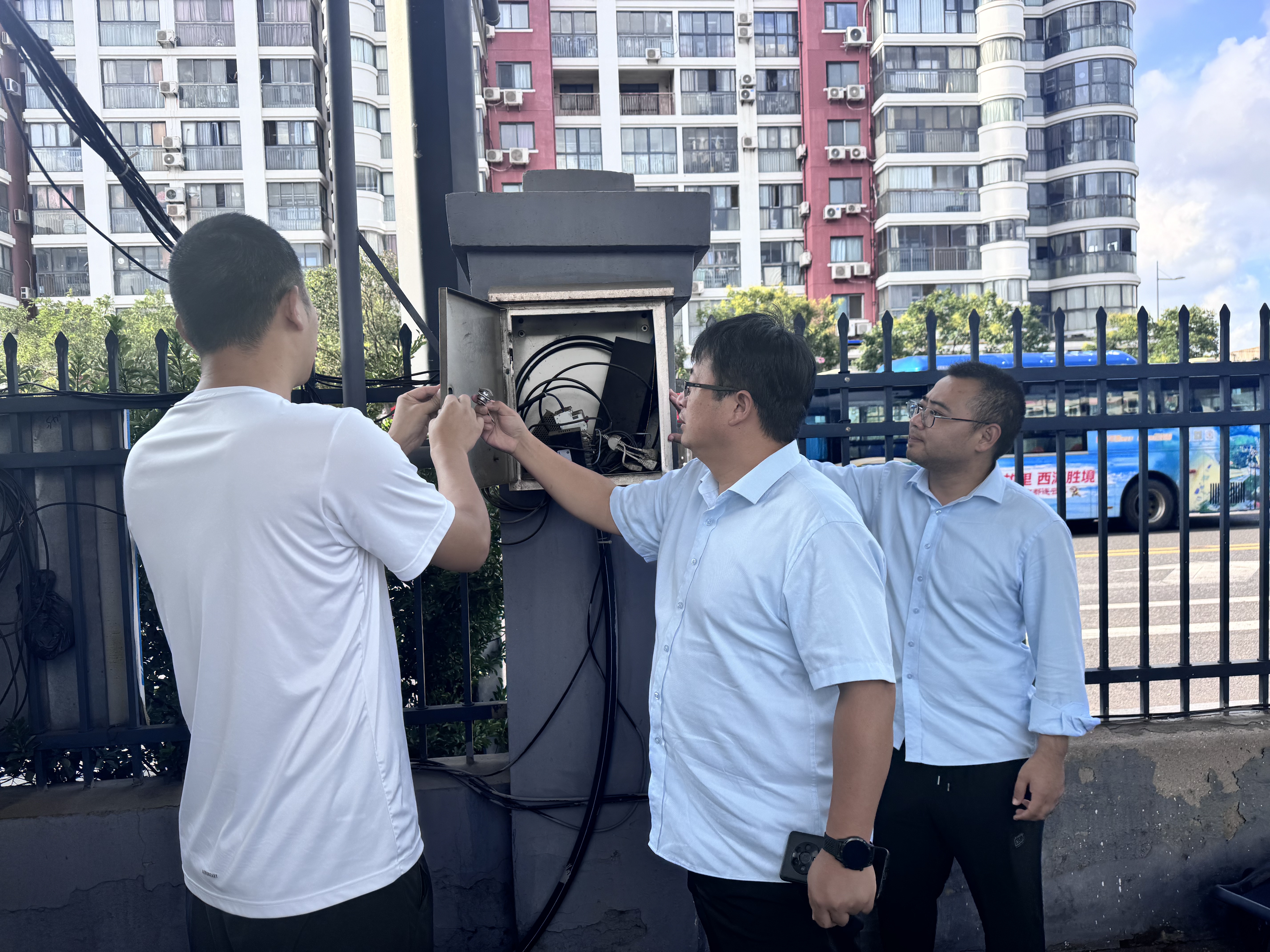 離開(kāi)久和總站,排查小組前往大港路區(qū)域。在這里,張作重點(diǎn)查看消防設(shè)施配備與維護(hù)情況,逐一檢查滅火器壓力是否正常、噴管是否完好,查看消防通道是否暢通,有無(wú)物品堆放阻礙通行;同時(shí),對(duì)區(qū)域內(nèi)的臨時(shí)用電設(shè)備進(jìn)行核查,確保接線(xiàn)規(guī)范、防護(hù)措施到位。此外,他還與現(xiàn)場(chǎng)工作人員深入交流,了解日常消防安全管理流程,強(qiáng)調(diào)要將消防安全責(zé)任落實(shí)到每個(gè)崗位、每個(gè)環(huán)節(jié),定期開(kāi)展自查與演練,讓安全意識(shí)深入人心。