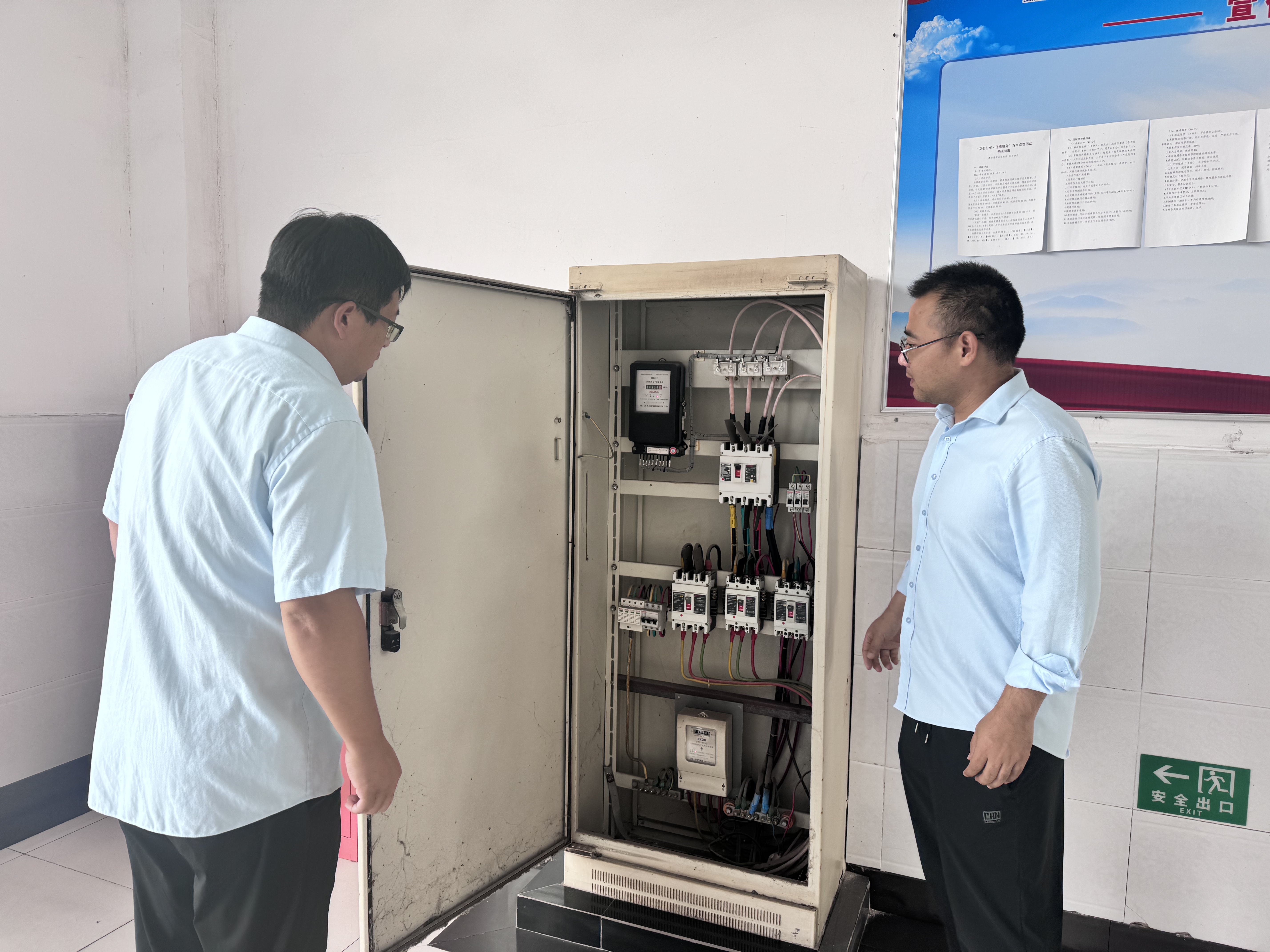 排查行動(dòng)首站聚焦久和總站。張作直奔用電核心區(qū)域,帶頭檢查電閘開(kāi)關(guān)運(yùn)行狀態(tài),用手輕觸電閘外殼感受溫度,查看有無(wú)過(guò)熱現(xiàn)象;隨后沿著線(xiàn)路排布逐一展開(kāi)排查,仔細(xì)觀(guān)察線(xiàn)路絕緣層是否完好,有無(wú)老化、破損痕跡。“線(xiàn)路就像場(chǎng)站的‘血管’,一點(diǎn)破損都可能引發(fā)大問(wèn)題。”他邊檢查邊向工作人員強(qiáng)調(diào)。來(lái)到插座區(qū)域,他逐一插拔測(cè)試穩(wěn)固度,手指輕按檢查接地是否牢固,同時(shí)提醒工作人員“用電設(shè)備要定期檢查,發(fā)現(xiàn)異常立即停用,絕不能抱有僥幸心理”。